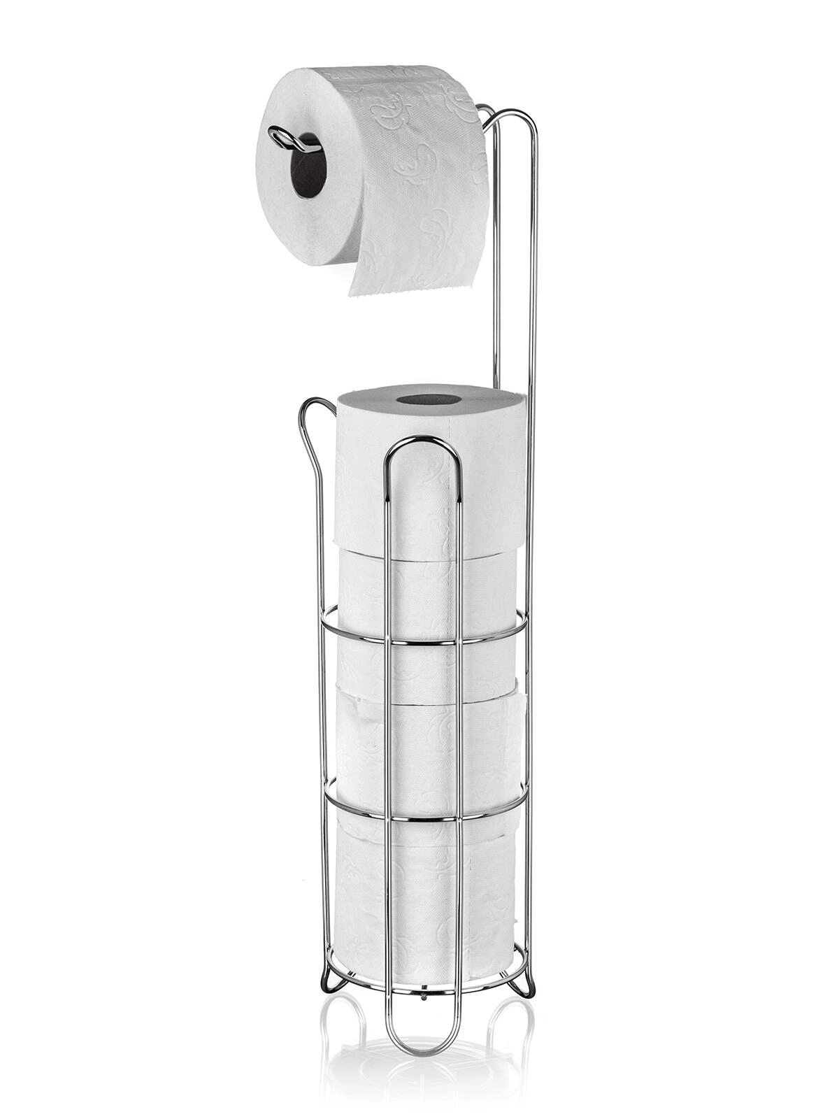 Udržte svou koupelnu přehlednou a stylovou. Tento volně stojící držák na toaletní papír v kvalitním chromu nabízí prostor pro několik náhradních rolí i pohodlné odvíjení jedné rolky nahoře. Díky štíhlému profilu se vejde i do menších koupelen a WC.
