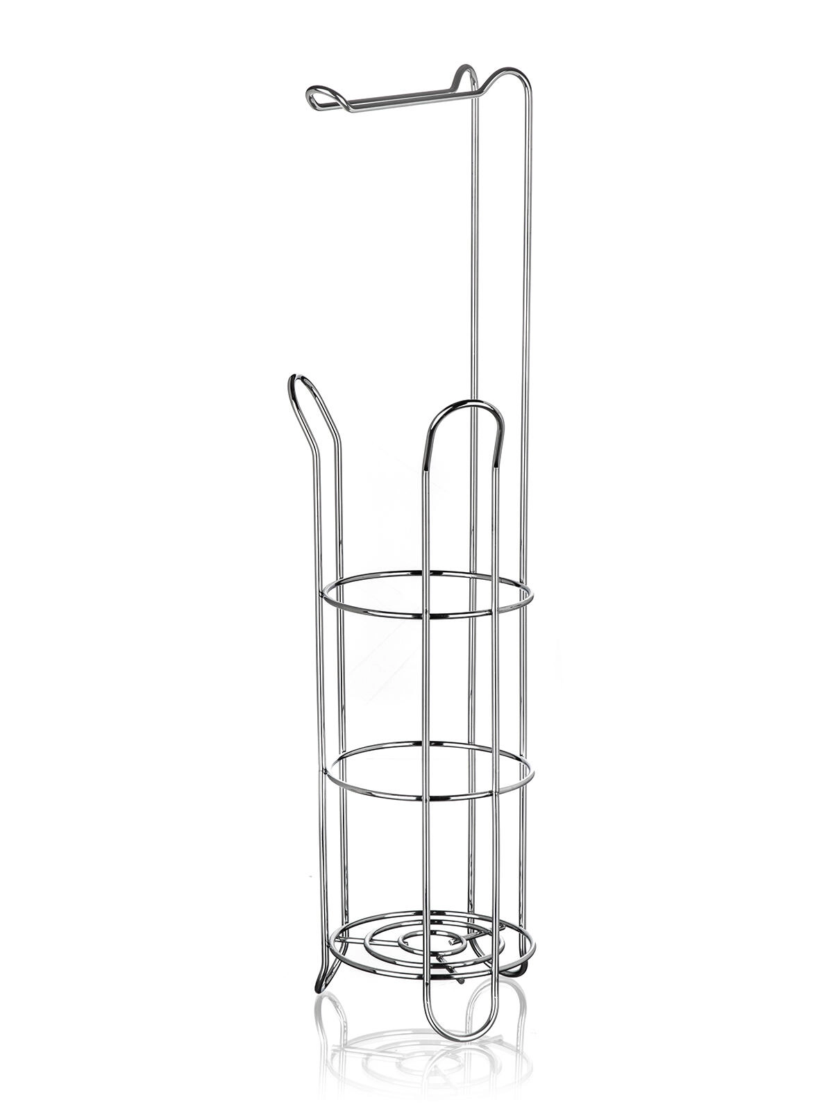 Elegantní stojan na toaletní papír s držákem v chromovém provedení kombinuje praktické ukládání až 4 rolí (3 ve stojanu + 1 na držáku) s úsporným využitím místa. Stabilní kovová konstrukce s lesklou povrchovou úpravou dodá vaší koupelně moderní vzhled a zajistí snadný přístup k rolím kdykoli potřebujete.