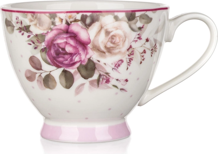 Objevte půvab klasického designu s hrnkem ROSE, který zdobí jemné růžové a béžové květy s decentními puntíky. Díky pohodlnému oušku a širokému okraji se z něj příjemně pije a stává se tak oblíbeným společníkem pro teplé i studené nápoje.