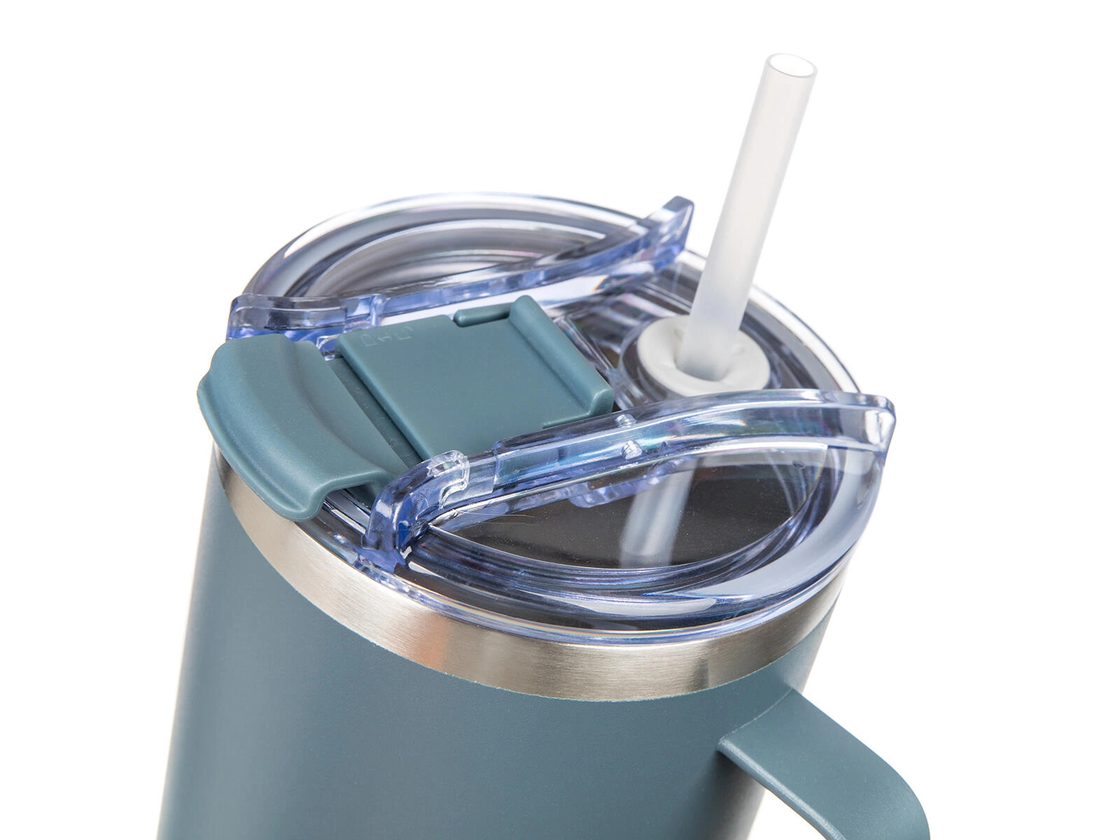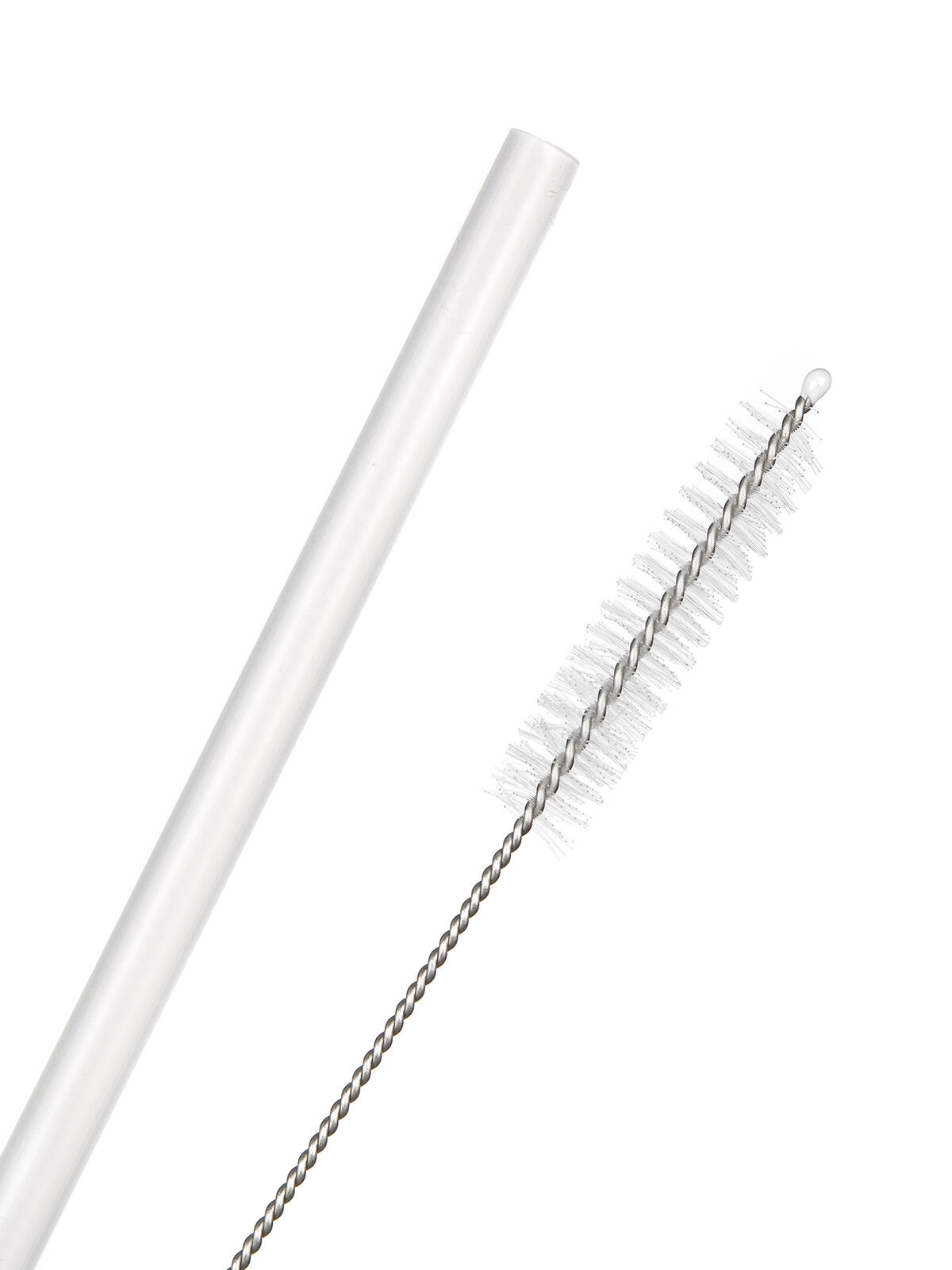 Transparentní víčko s otvorem umožňuje pít přímo nebo přes přiložené PP brčko. V balení je i kartáček pro snadné čištění.