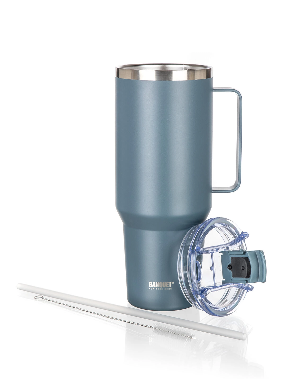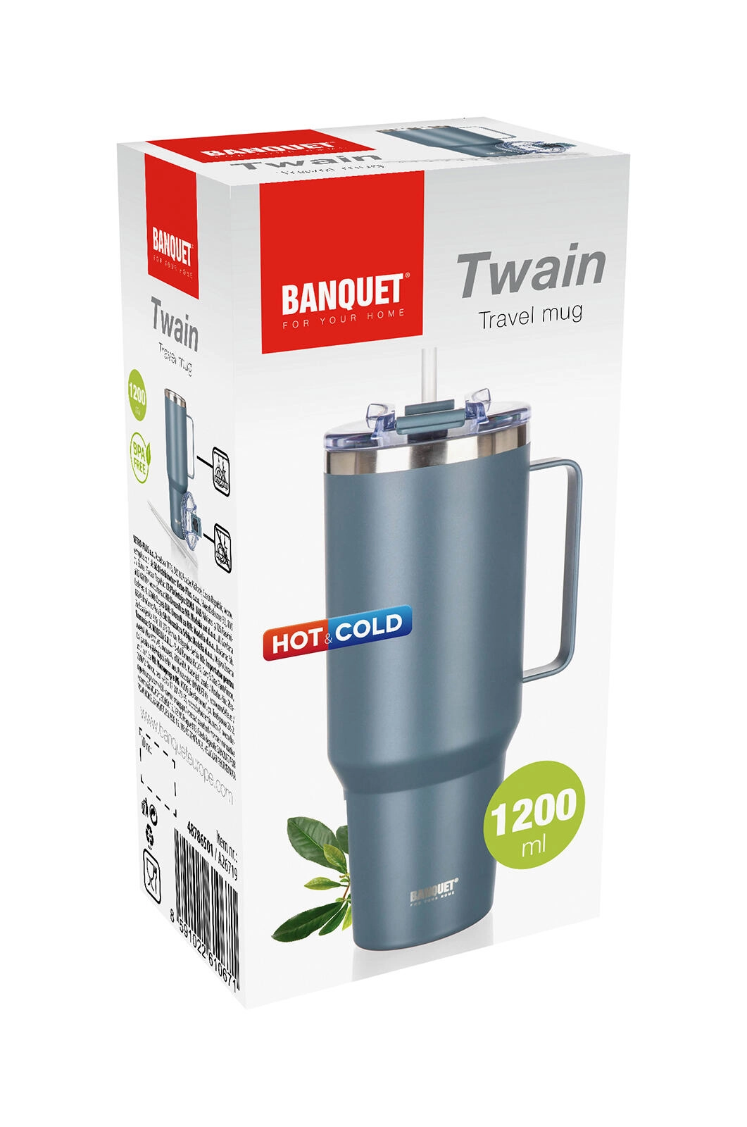 Praktický dvoustěnný termohrnek TWAIN 1200 ml udrží vaše nápoje dlouho horké nebo studené díky vakuové izolaci. Má odolné nerezové tělo, pohodlné ucho pro snadné přenášení a víčko se škvírou pro pití/slámku. V balení najdete PP brčko a čistící kartáček.