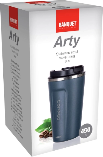Praktický dvoustěnný termohrnek ARTY o objemu 450 ml udrží vaše nápoje déle horké nebo studené díky vakuové izolaci. Má odolné nerezové tělo, pohodlné pití přes flip víčko a velikost ideální do ruky i držáku v autě. Skvělý společník na cesty, do práce i na výlety.