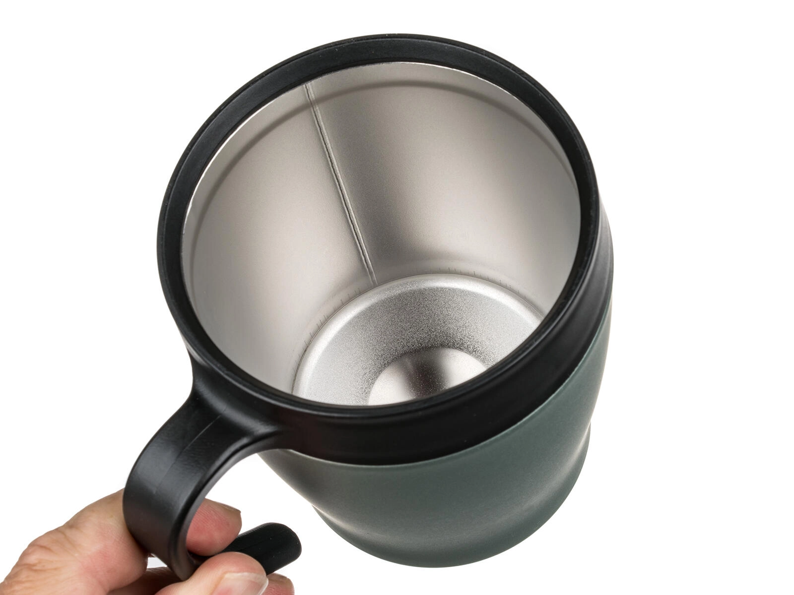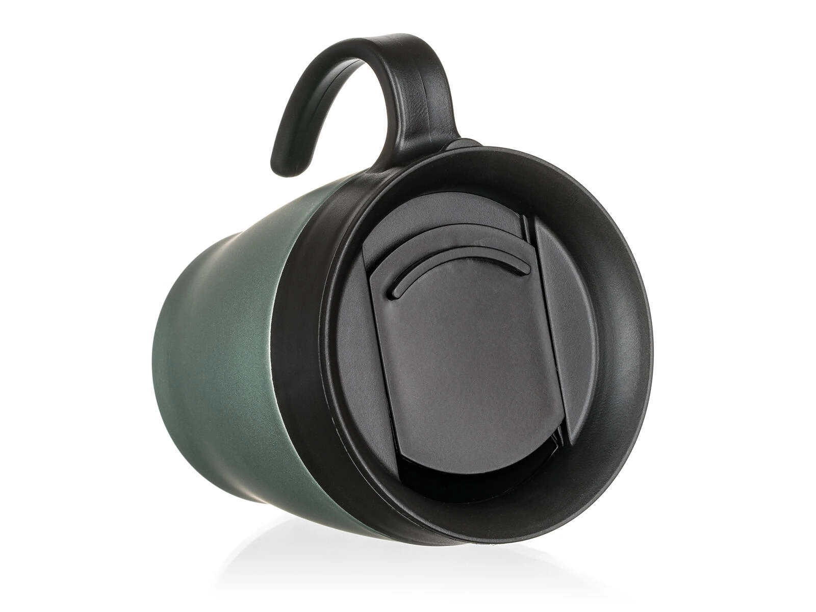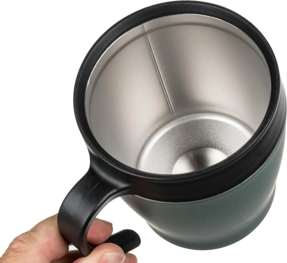 Praktické víčko umožňuje pohodlné popíjení na cestách. Víčko není zcela nepropustné – pro bezpečné používání doporučujeme uchovávat ve svislé poloze. Elegantní zelenošedá metalická úprava dodá vašemu každodennímu rituálu styl.