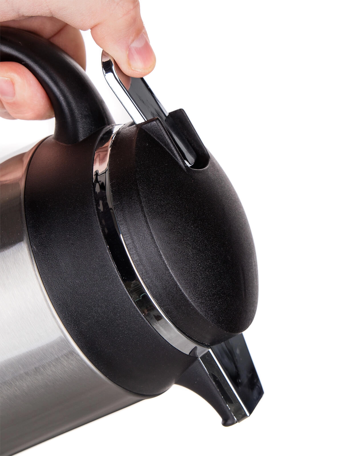 Díky kombinaci materiálů – nerezová ocel, PP plast (víčko a držadlo), pochromovaný ABS a silikonové těsnění – je konvice spolehlivá, dobře těsní a snadno se udržuje. Hodí se pro kávu, čaj i studené nápoje a s objemem 1 l je perfektní pro každodenní použití.