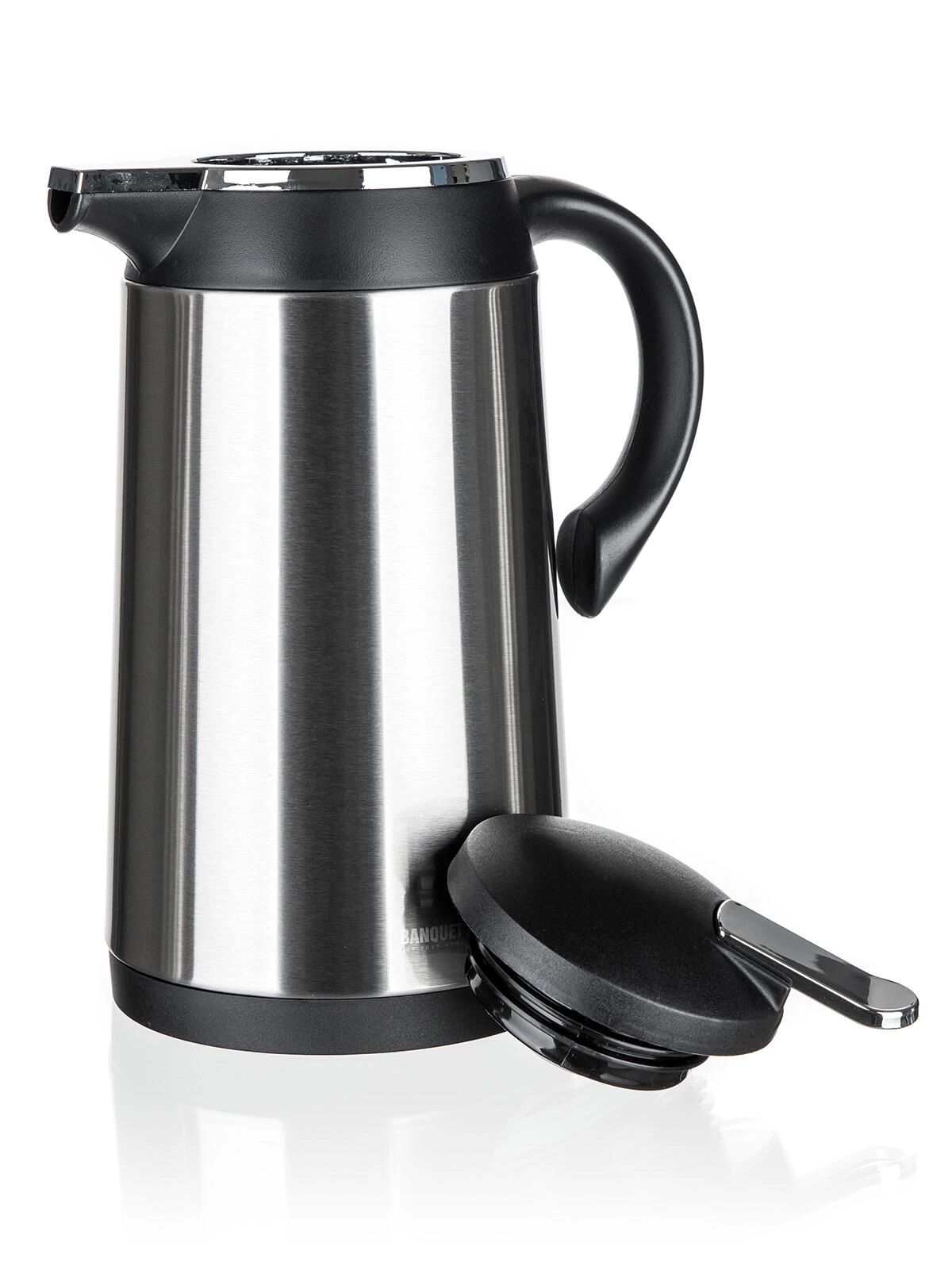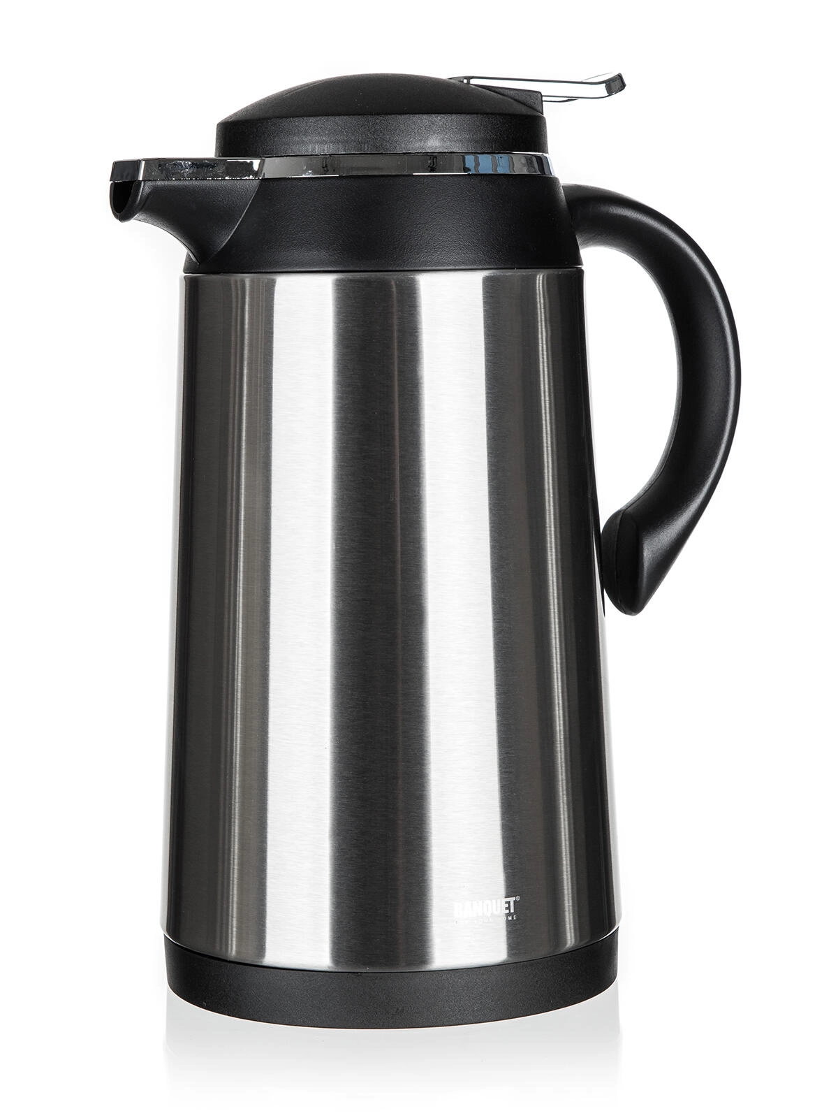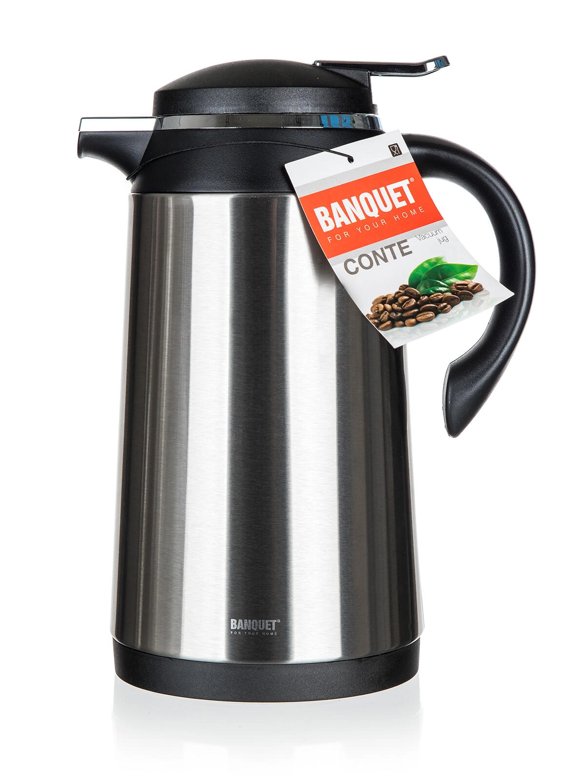 Termokonvice BANQUET CONTE je ideální volbou pro domácnost, kancelář i zahradní posezení. Dvoustěnná konstrukce se skleněnou vložkou výborně drží teplotu, zatímco nerezový plášť s kvalitní povrchovou úpravou dodává konvici odolnost a moderní vzhled. Praktický pákový mechanismus víčka umožňuje pohodlné jednou rukou nalévat bez kapání.