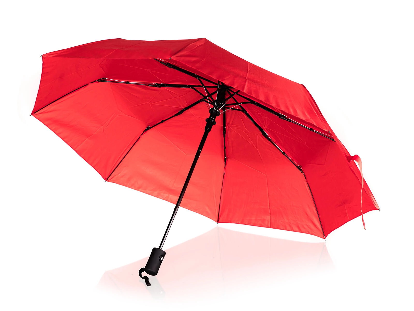 Tento lehký a přenosný deštník kombinuje praktický design s odolným zpracováním. Červený potah z kvalitního polyesteru spolehlivě odpuzuje vodu, zatímco zesílená konstrukce žeber zajišťuje stabilitu ve větru. Kompaktní rozměry a skládací provedení usnadňují uložení do kabelky, batohu nebo auta.