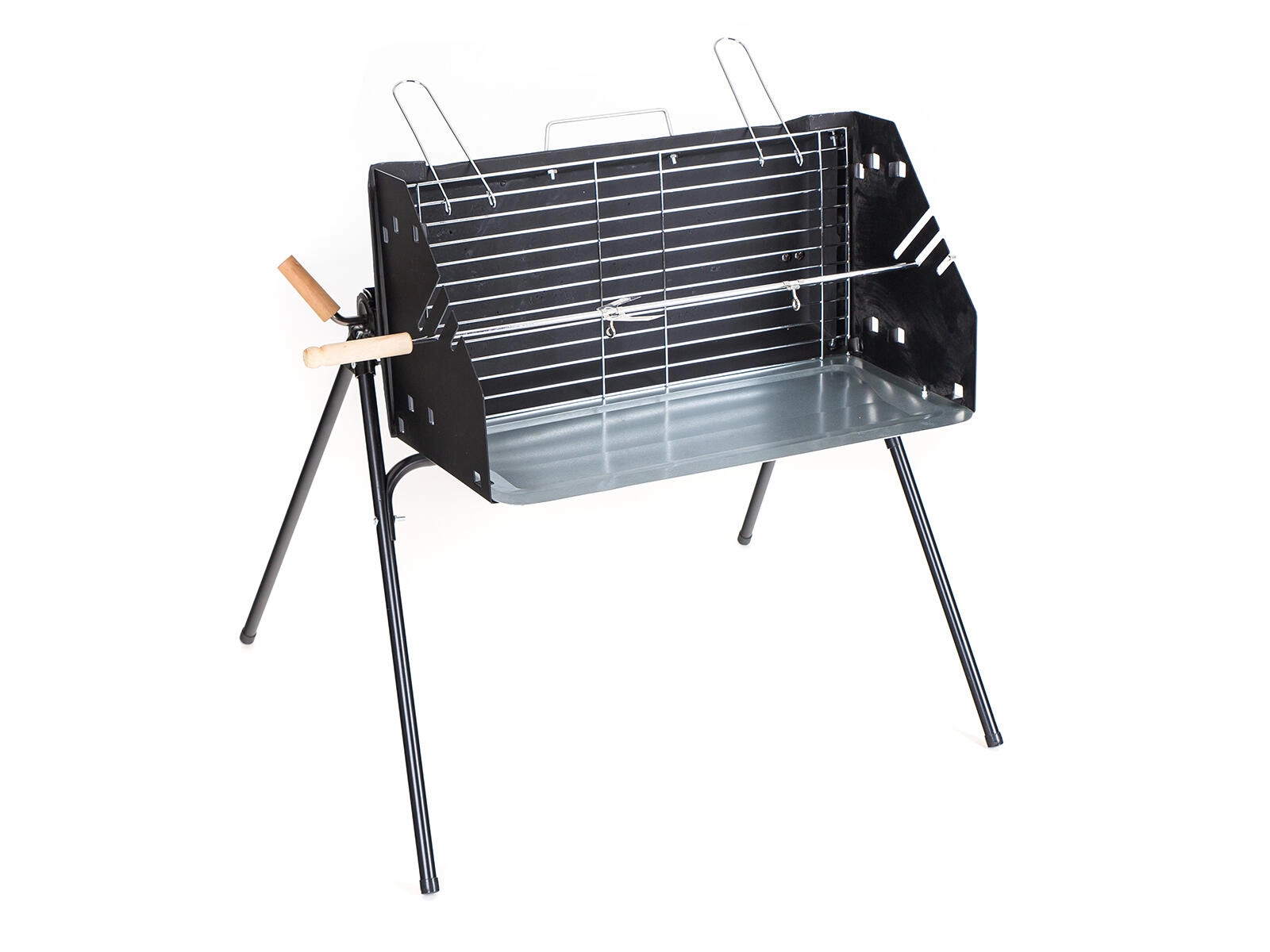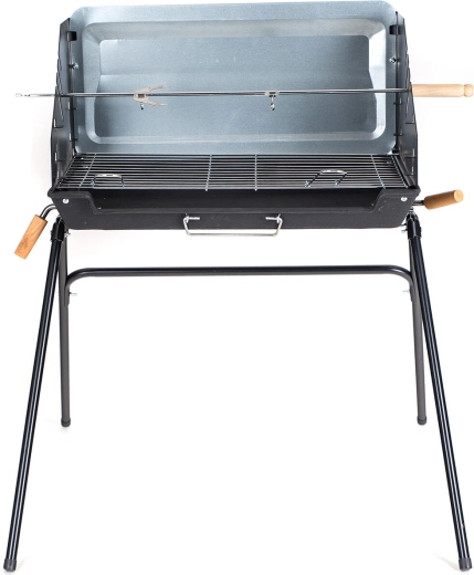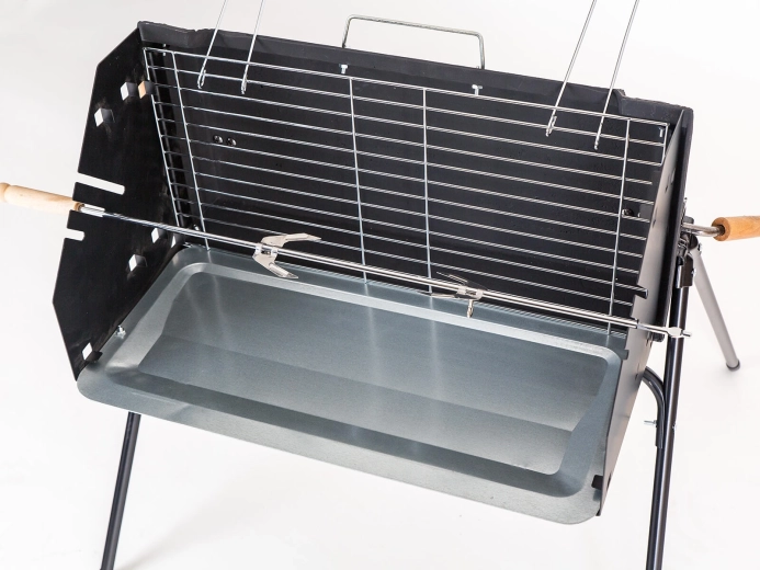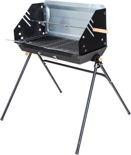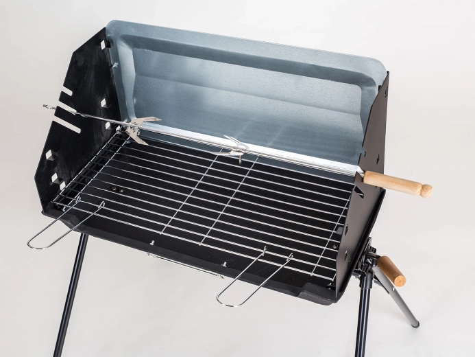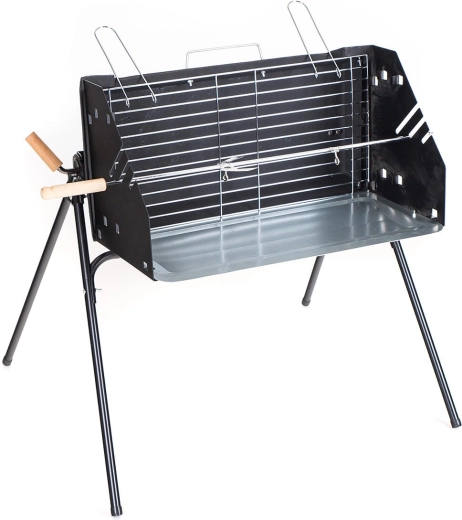 Otočný rožeň se dvěma dvojbodci je součástí balení, takže snadno připravíte kuře na rožni, rolády či větší kusy masa. Při vertikálním režimu šťáva stéká do záhybné plochy mimo žhavé uhlí, což minimalizuje dým a podporuje zdravější přípravu. Navíc můžete dosypávat palivo za chodu bez nutnosti manipulace s grilem.