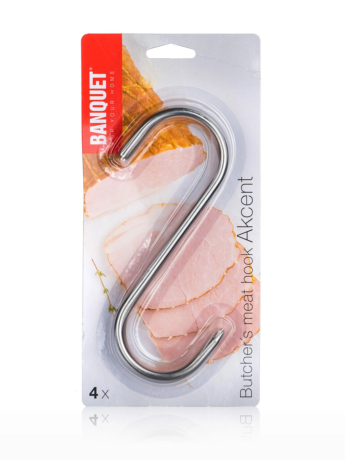 Praktické háčky do udírny AKCENT z kvalitní nerezové oceli pro bezpečné a stabilní zavěšení masa. Díky rozměrům 16 × 12 cm a drátu o průměru 6 mm jsou pevné, odolné a hygienické. V balení najdete 4 kusy, které jsou vhodné pro navěšovací trubku o průměru do 50 mm.