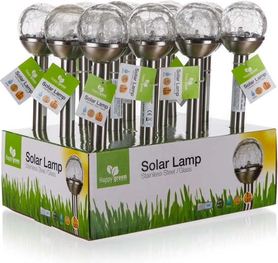 Solární zahradní lampa koule 8 cm z nerezové oceli a čirého skla, 2 LED