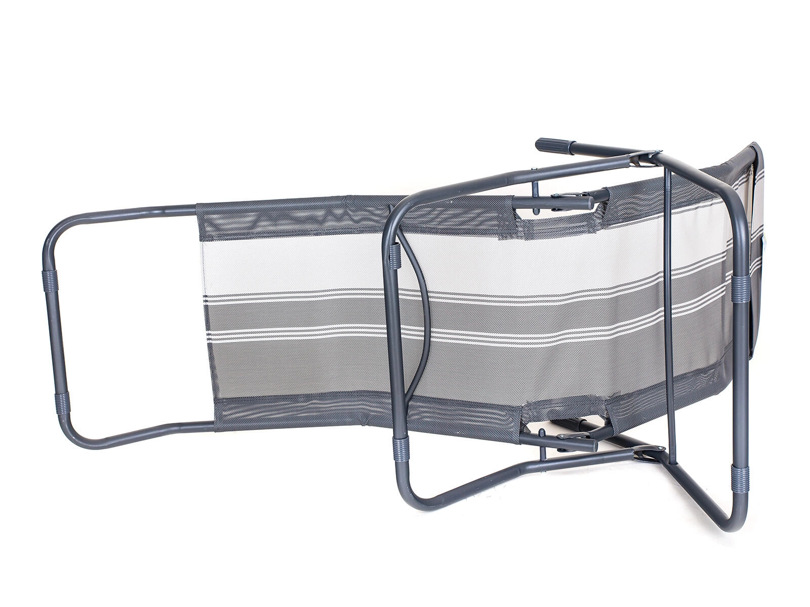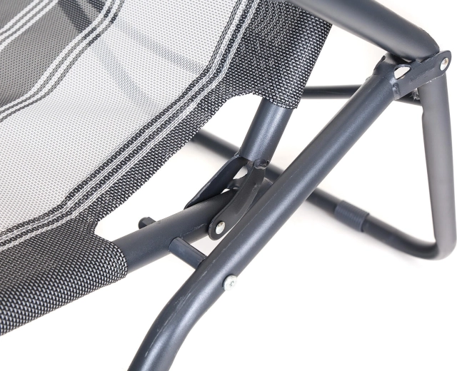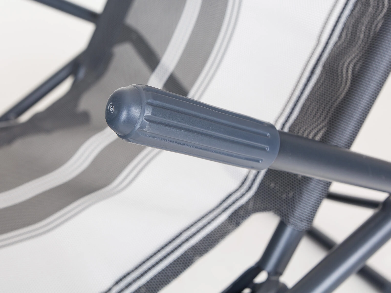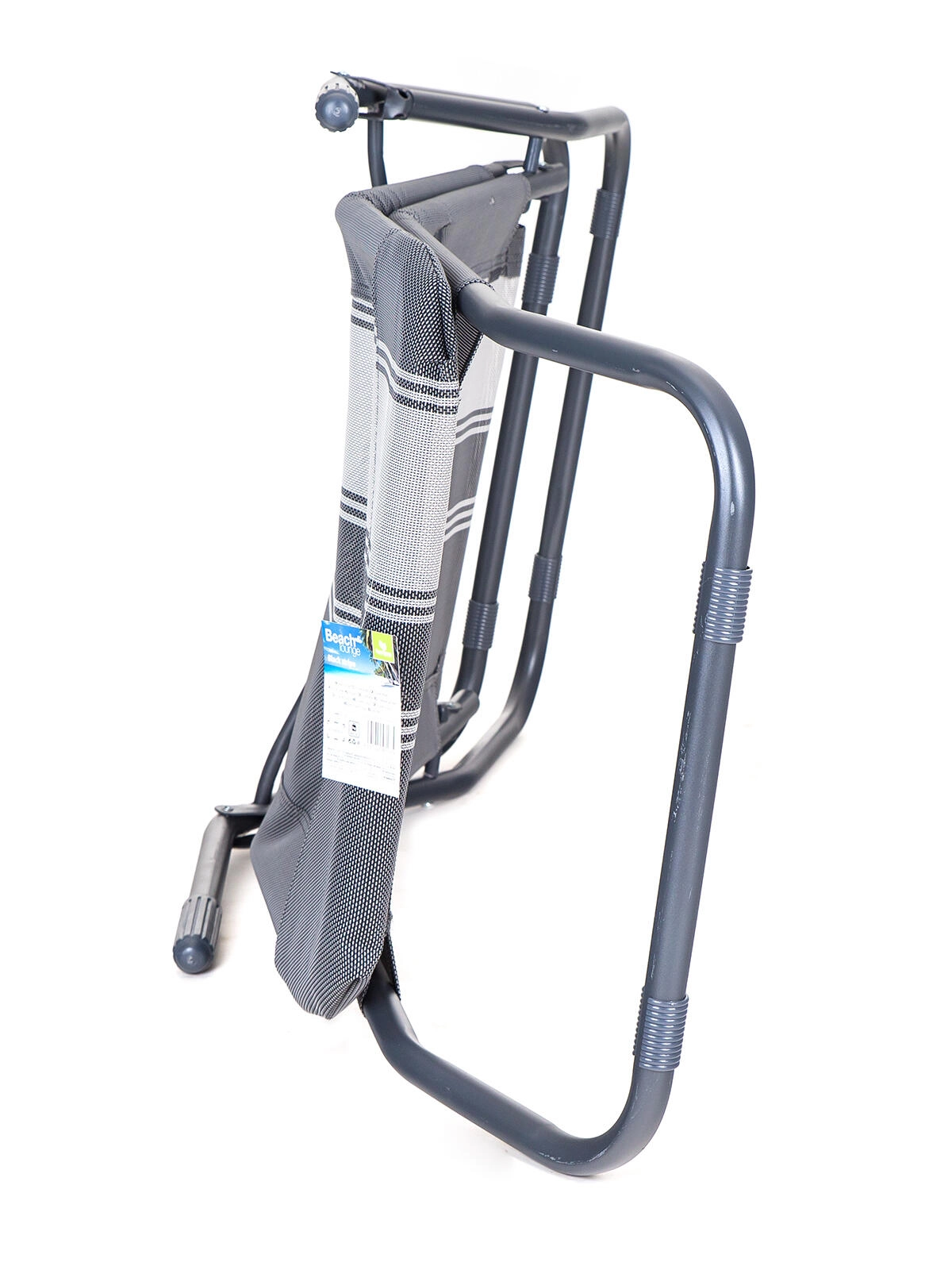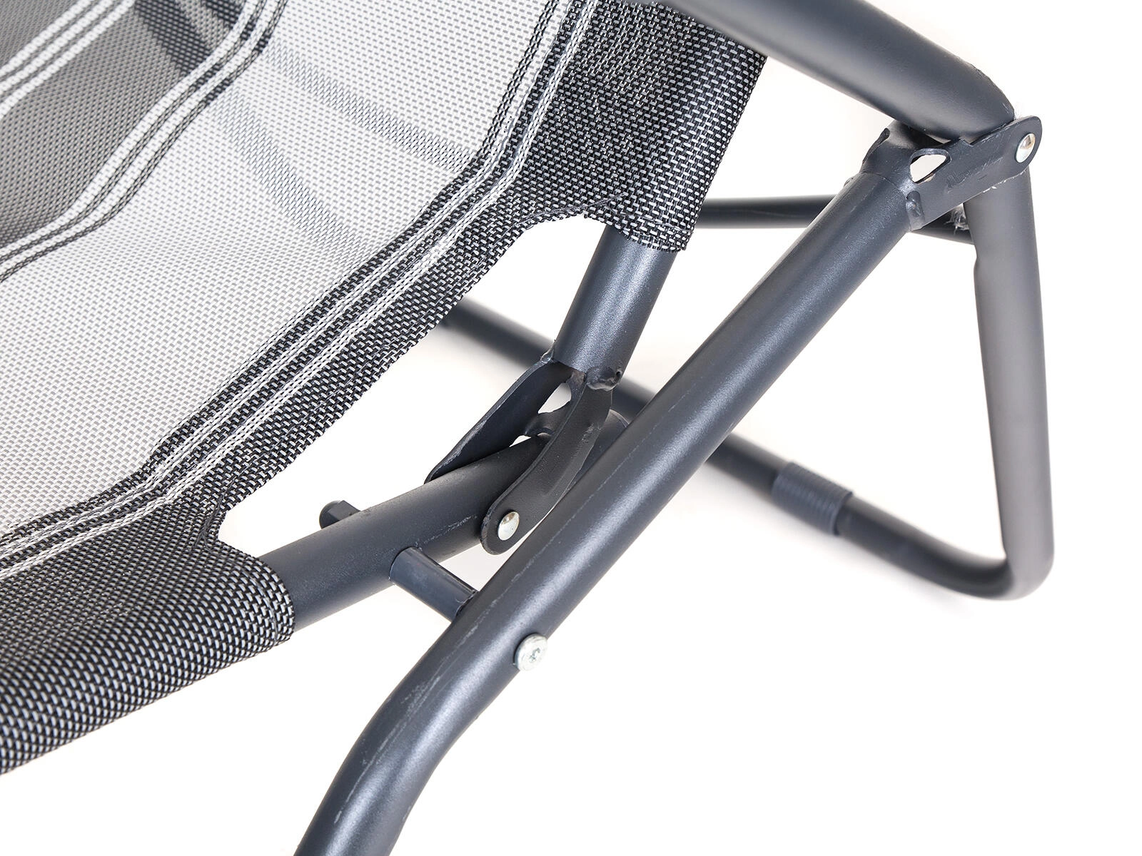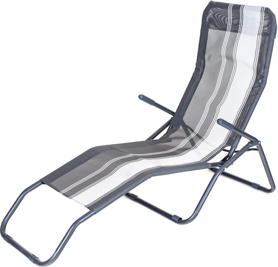 Užijte si odpočinek na čerstvém vzduchu se skládacím lehátkem, které kombinuje odolnou kovovou konstrukci s pohodlným a rychleschnoucím textilním potahem v elegantním pruhovaném dekoru. Díky dvěma polohám snadno přepnete ze sezení do ležení pouhým přenesením váhy těla.