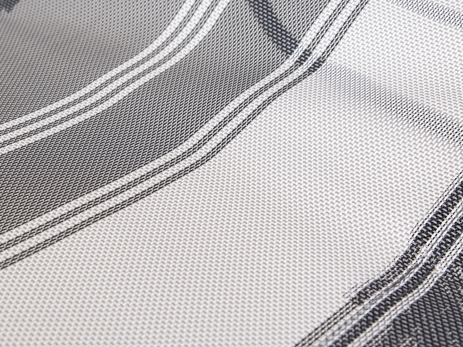 Textilní síťovina s pruhovaným dekorem je odolná, vzdušná a příjemná na dotek – ideální pro letní dny u bazénu i na zahradě.