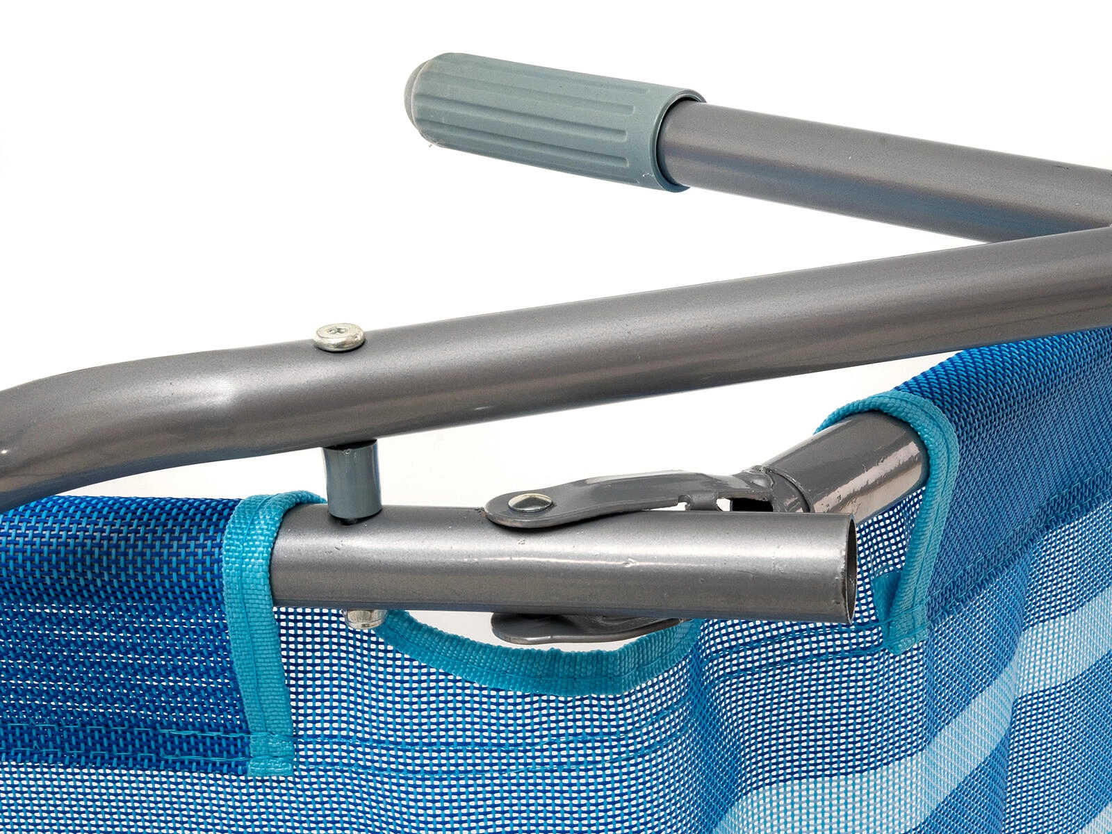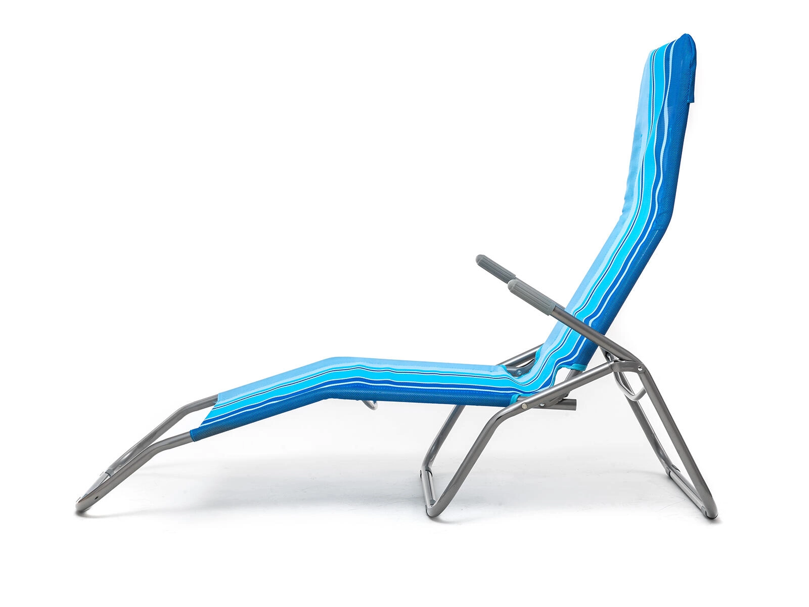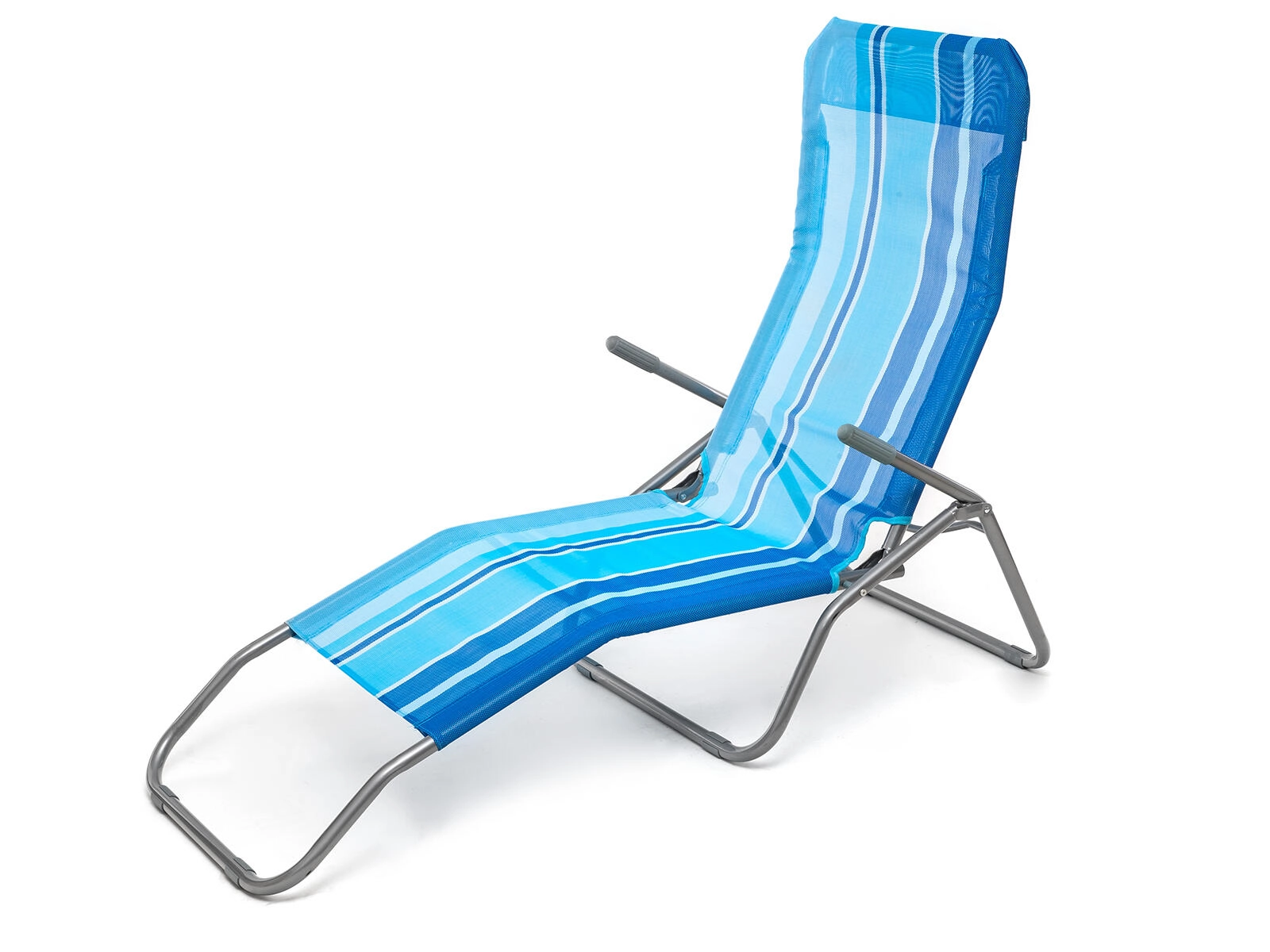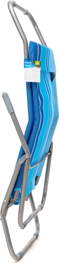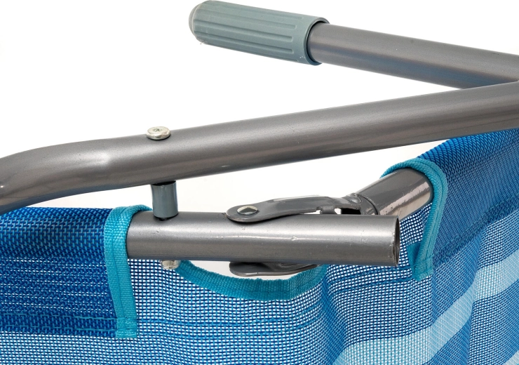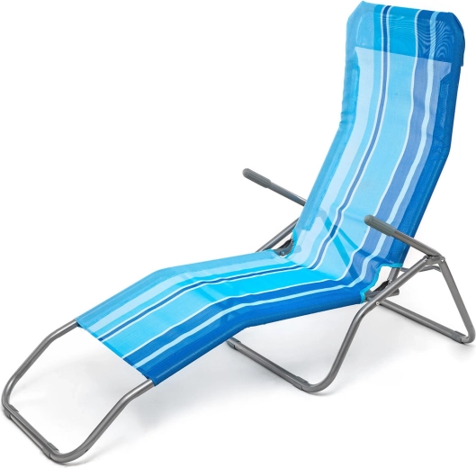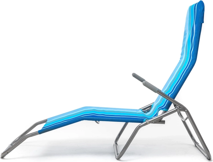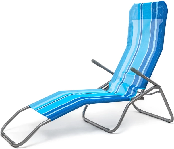 Praktické skládací plážové lehátko v elegantním modrém pruhovaném dekoru je navrženo pro pohodlnou relaxaci venku. Stabilní kovová konstrukce s plastovými doplňky zajišťuje dlouhou životnost, zatímco textilní potah příjemně dýchá a rychle schne. Díky jednoduchému překlápěcímu systému snadno přejdete ze sezení do lehu pouhým přenesením váhy.