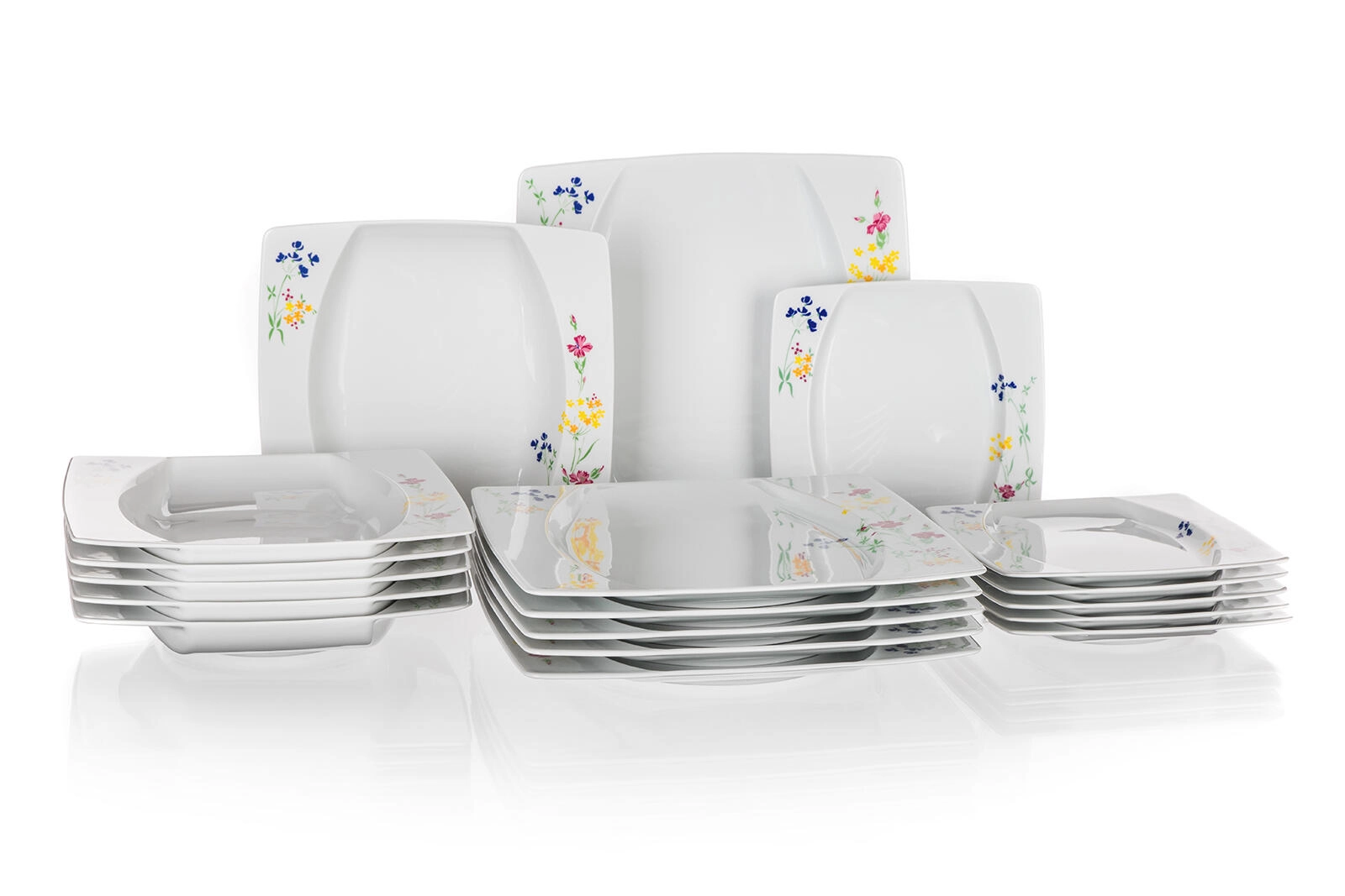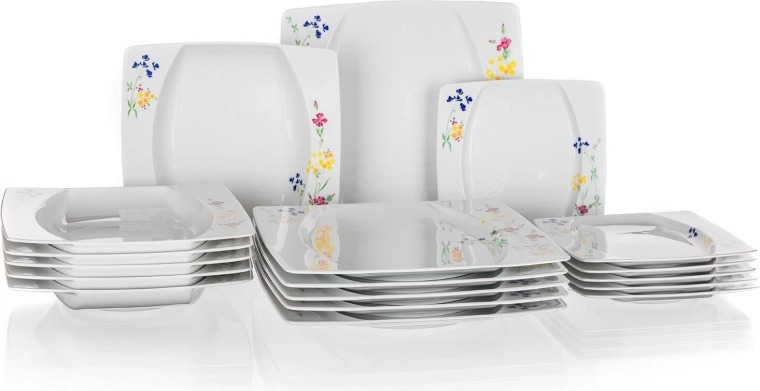 - Kompletní výbava pro 6 osob: mělké, hluboké i dezertní talíře