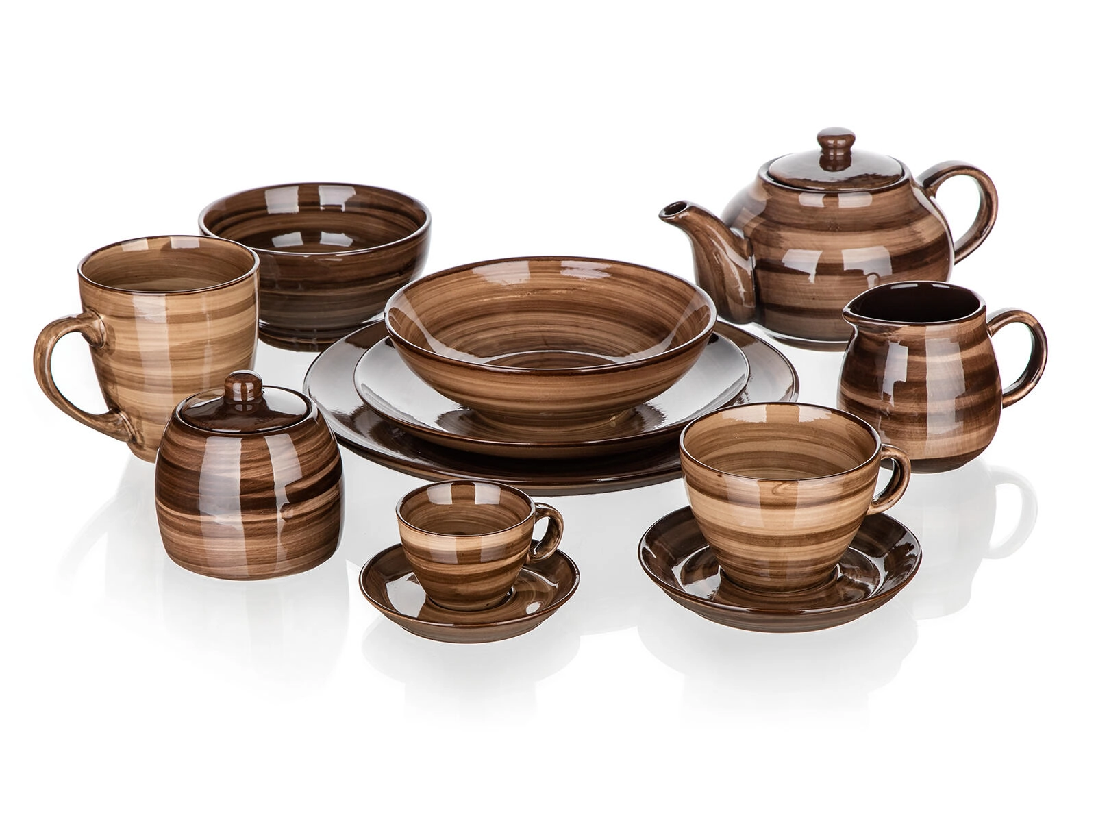 Lesklý hnědý povrch s jemnou kresbou snadno zapadne do každé kuchyně a dodá stolování příjemný, přírodní akcent.