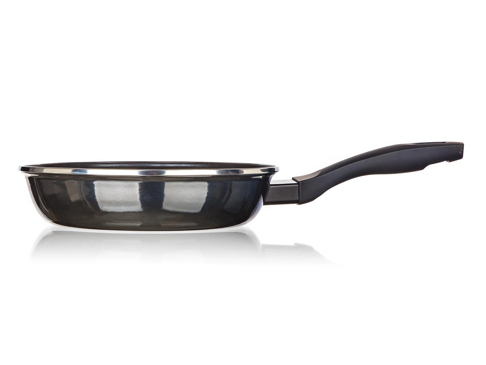Vnější smaltovaný povrch chrání pánev před poškrábáním a korozí, zatímco soft touch bakelitová rukojeť je příjemná na dotek a zůstává chladná. Elegantní černá metalíza dodá vaší kuchyni moderní vzhled.