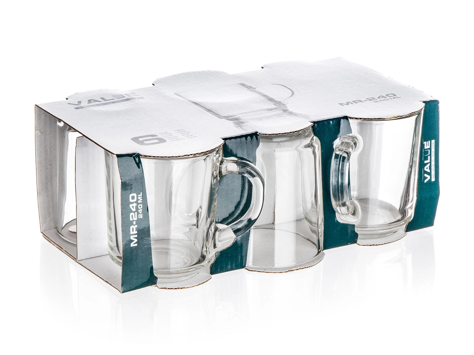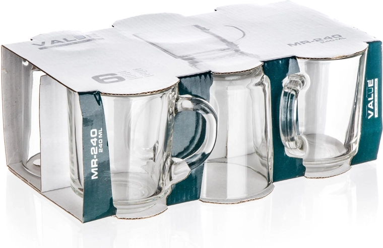 Sada skleněných hrnků VALUE 240 ml přináší spojení funkčnosti a čistého designu. Transparentní sklo nechá vyniknout barvám nápoje, zatímco robustní dno a ergonomické ucho zajistí bezpečné a pohodlné servírování čaje, kávy i studených limonád.
