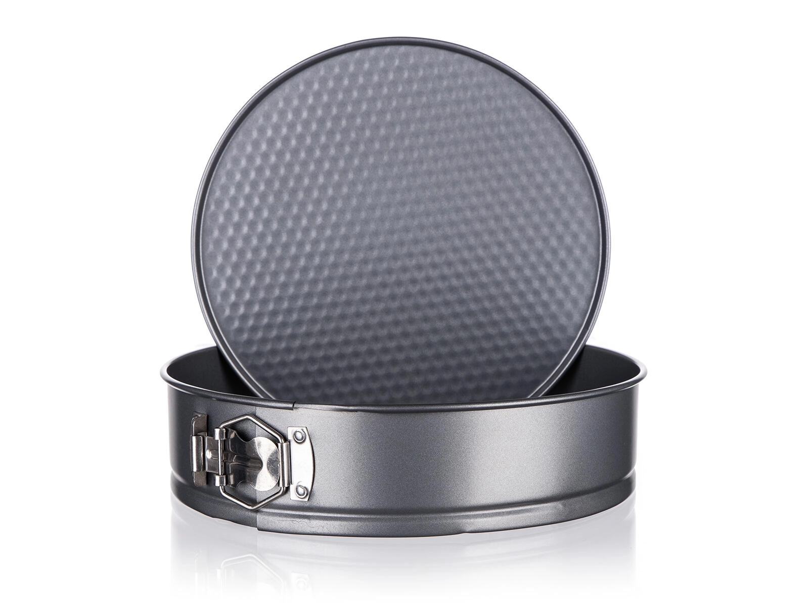Texturovaný základ podporuje rovnoměrné pečení a uvolnění upečeného korpusu, pevná konstrukce drží tvar i při častém používání.