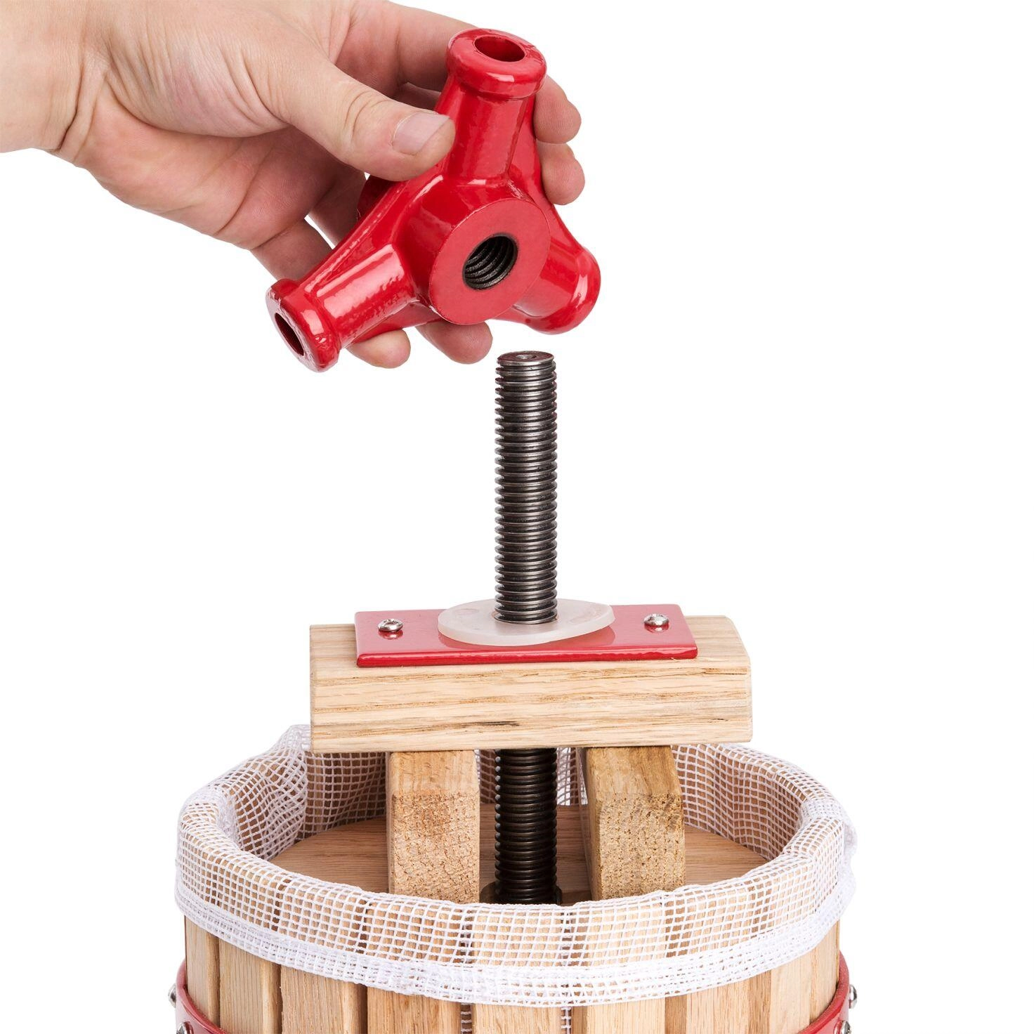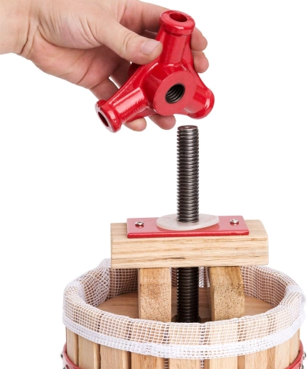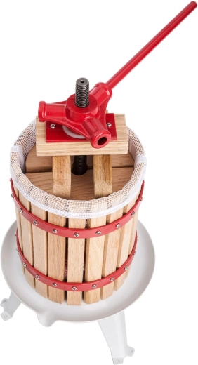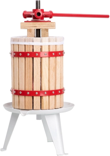 Vylepšete domácí zpracování ovoce s prostorným ručním lisem o objemu 30 litrů. Stabilní základna, pevné dřevěné lamely a šroubový tlakový mechanismus umožňují efektivně lisovat i větší dávky rozdrcených jablek či hroznů. Přiložená filtrační rouška zadržuje dužinu a pecky, takže výsledkem je průzračná šťáva vhodná pro moštování i vinařství.