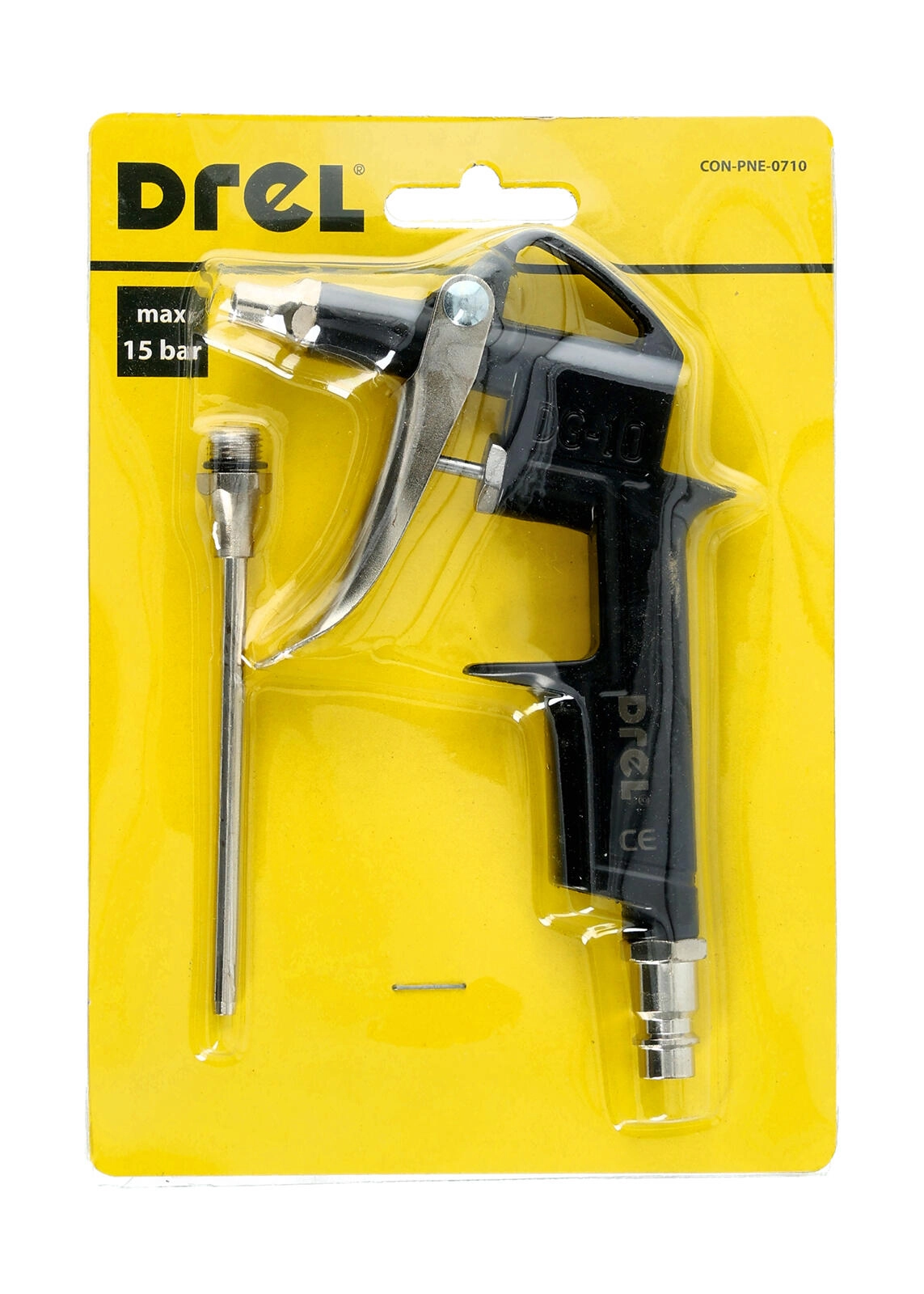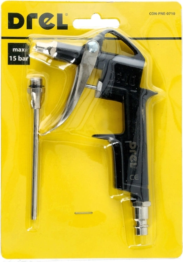 Ofukovací pistole Drel je spolehlivý pomocník do dílny, garáže i výroby. Díky robustnímu hliníkovému tělu odolá náročnému používání a přitom zůstává lehká a snadno ovladatelná. Úzká tryska s průměrem 2 mm zajišťuje soustředěný proud vzduchu pro efektivní odstranění prachu, pilin, třísek nebo nečistot z těžko dostupných míst.