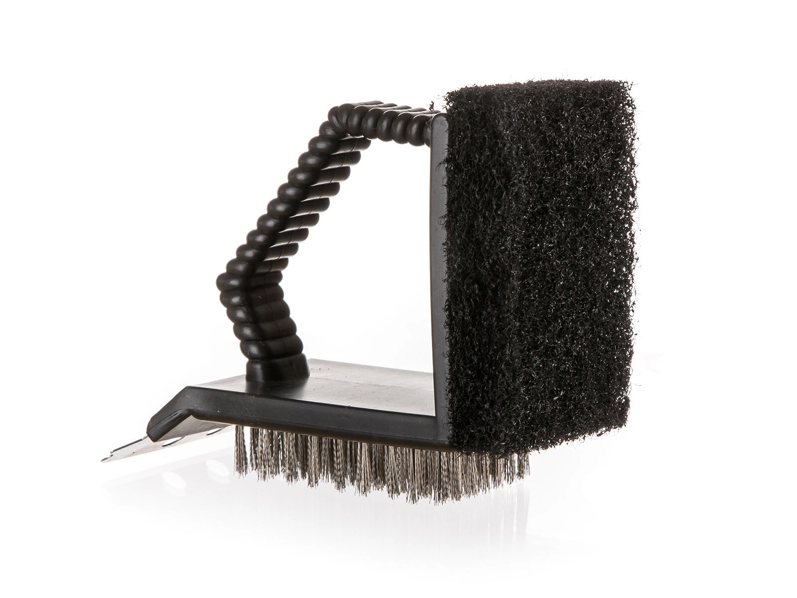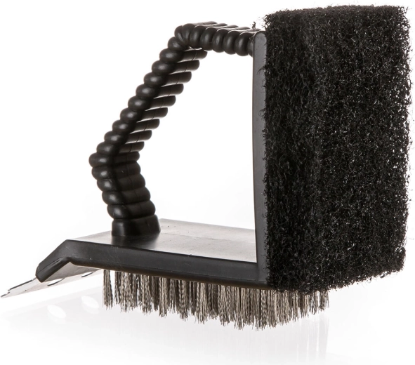 Praktický kartáč na gril 3 v 1 zajistí rychlé a účinné čištění po každém grilování. Kombinuje škrabku, kovový kartáč a houbovou stěrku pro důkladnou údržbu grilovací mřížky i desky.