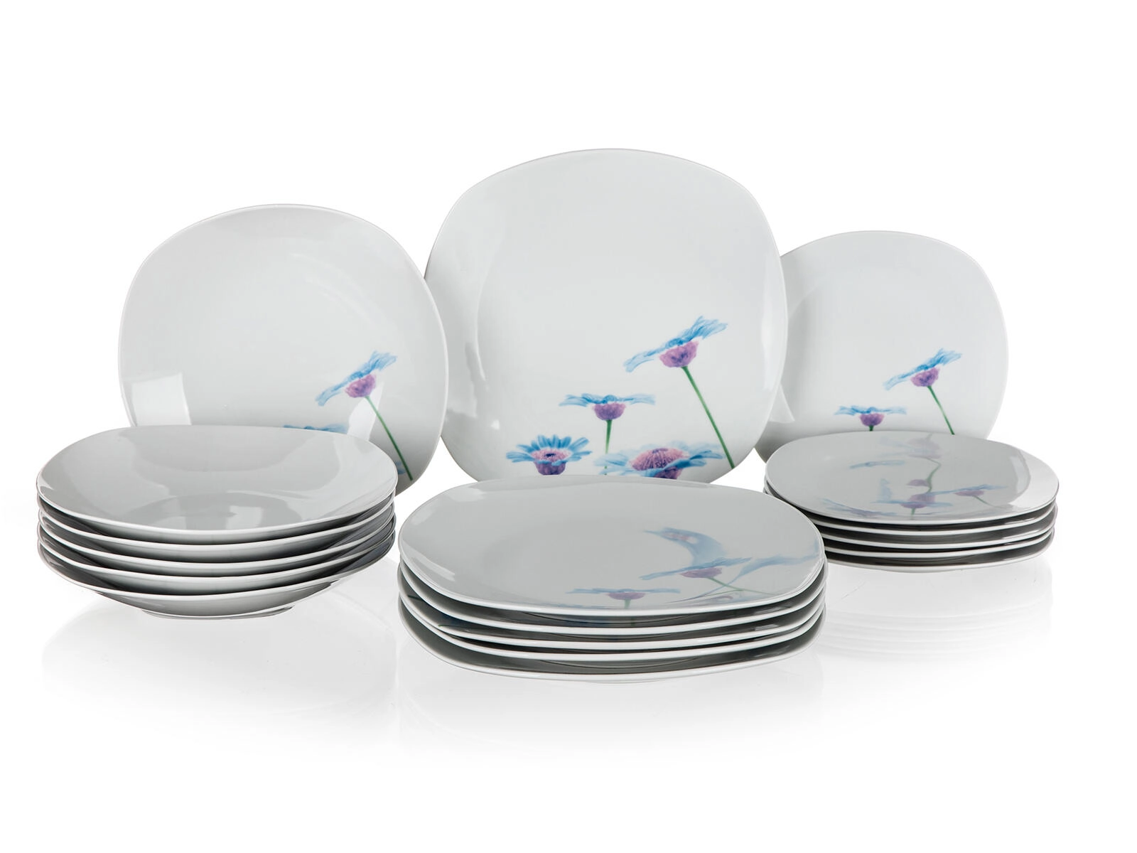 Porcelánová jídelní sada Blue Daisy, čtvercová, 18dílná