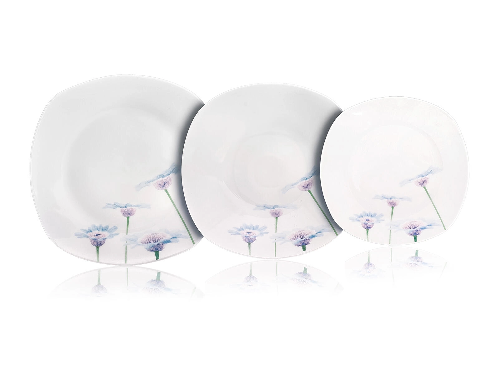 Obsahuje mělké, hluboké a dezertní talíře – vše potřebné pro servírování hlavních chodů, polévek i dezertů.