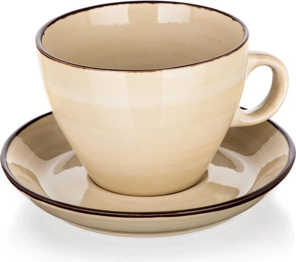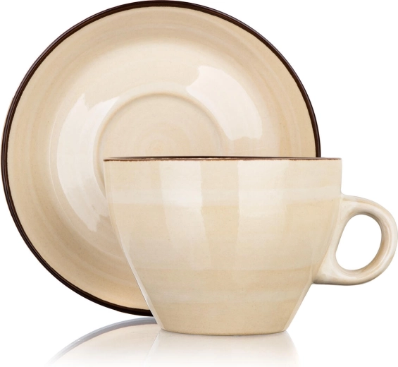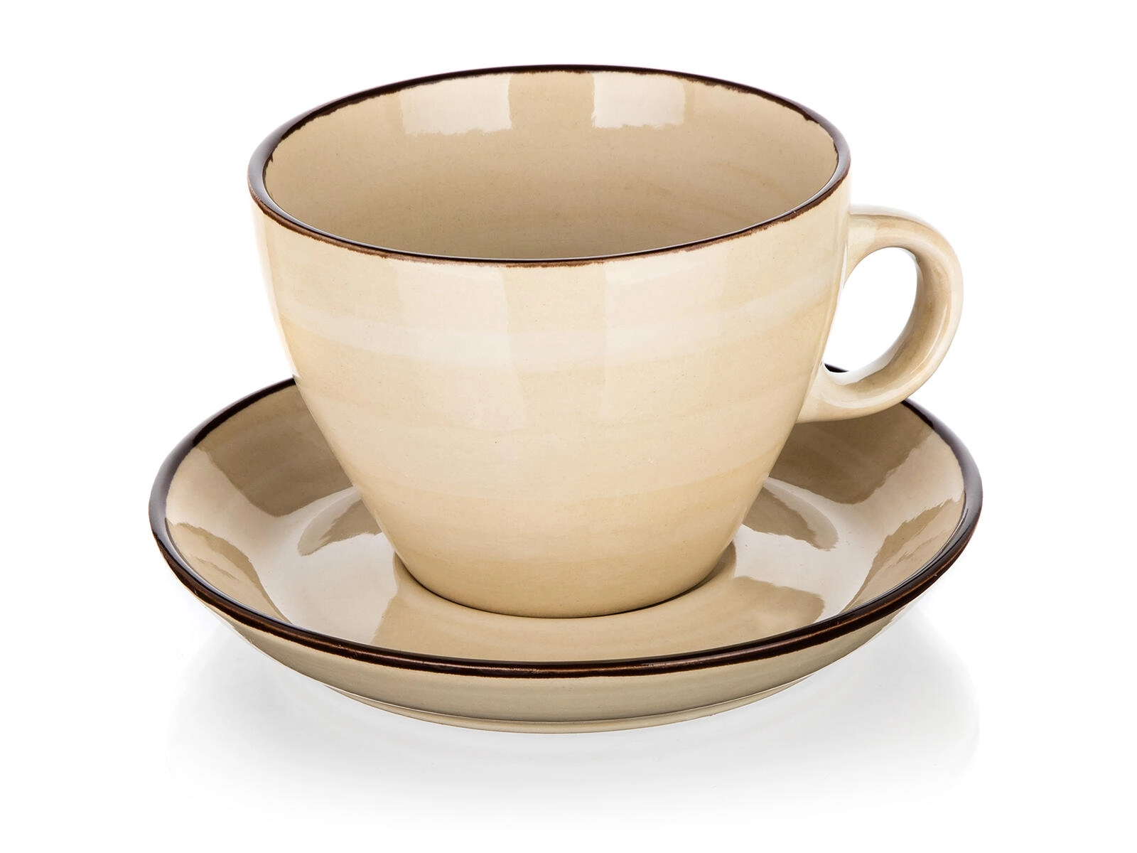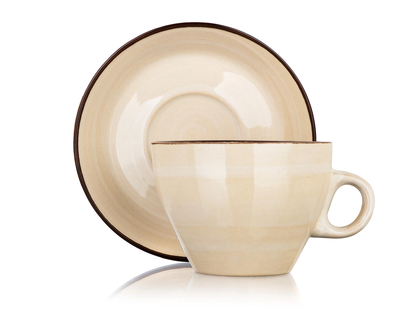 Vychutnejte si oblíbený nápoj ve stylu s keramickým šálkem a podšálkem Palas. Krémové provedení s kontrastním tmavým okrajem působí elegantně na každém stole a díky glazovanému povrchu se set snadno čistí a dlouho si udrží svůj vzhled.