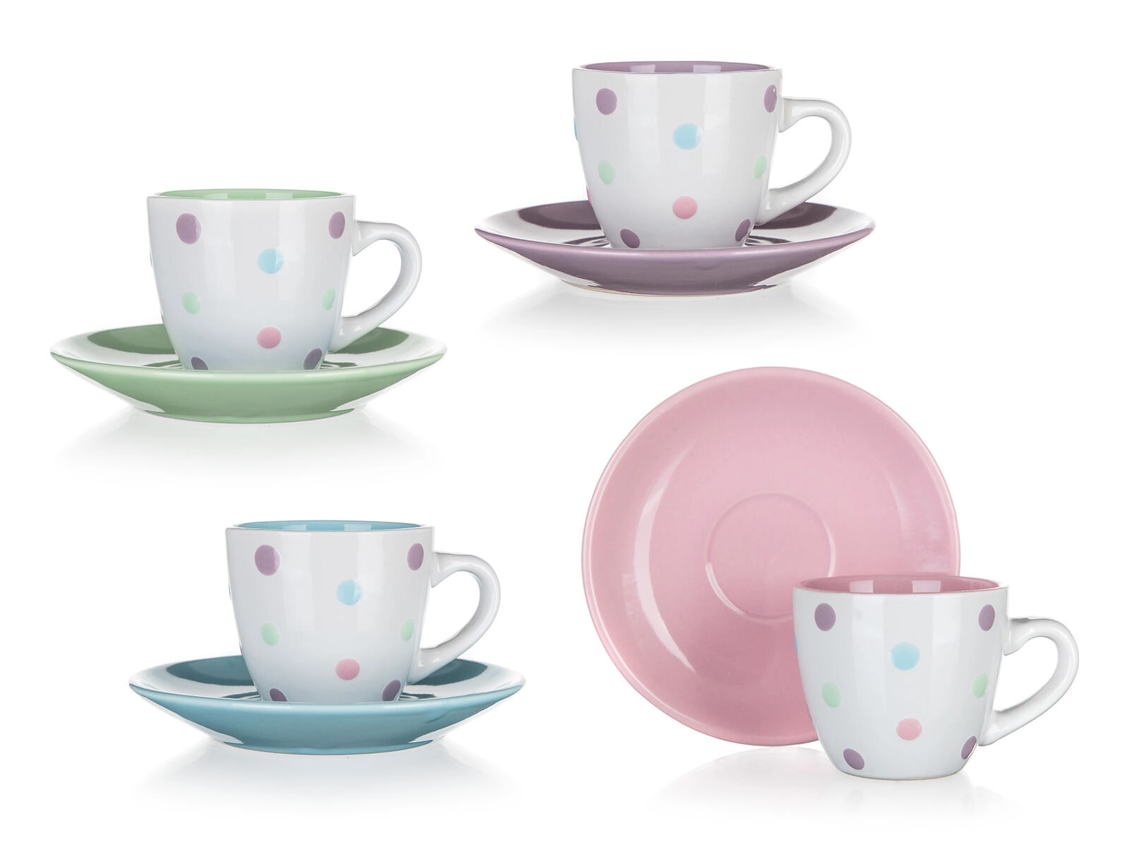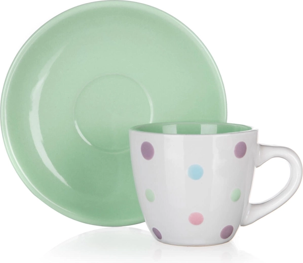 Hravé pastelové barvy s polka dot vzorem a sladěným podšálkem dodají vaší domácí kavárně osobitý šarm. Snadná údržba a odolné provedení dělají z PUNTO praktický doplněk do každé kuchyně.