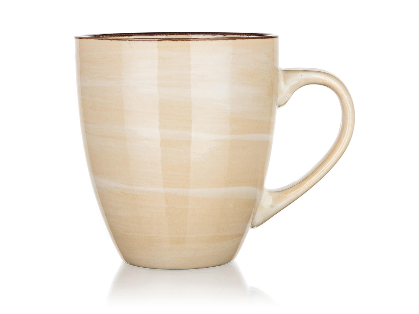 Tento elegantní krémový hrnek Palas z kvalitní keramiky potěší svým nadčasovým vzhledem i praktickými vlastnostmi. Hladká glazura se snadno čistí a tmavší okraj dodává šálku charakter. Objem 400 ml je ideální pro latté, sypané čaje i bylinkové nálevy.