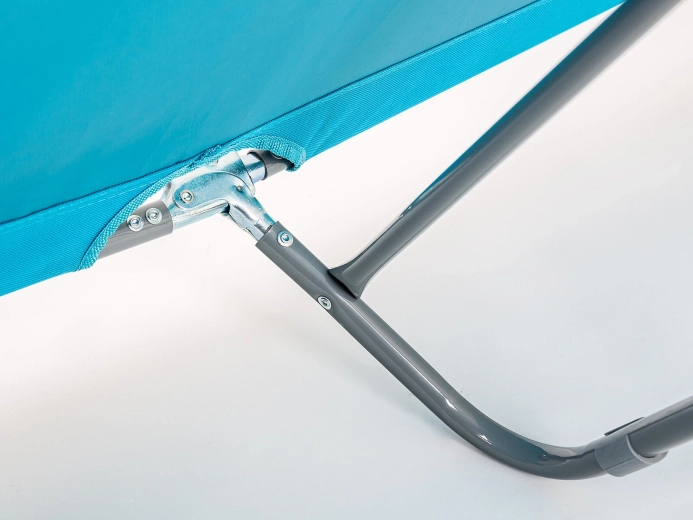 Lehátko SUNBAY kombinuje odolnou konstrukci a praktické provedení pro pohodlný odpočinek venku. Světle modrá textilie z 600D Oxford je příjemná na dotek a zároveň snadno udržovatelná. Díky nastavitelnému opěradlu i podnožce si zvolíte polohu přesně podle sebe – od čtení až po úplné lenošení.