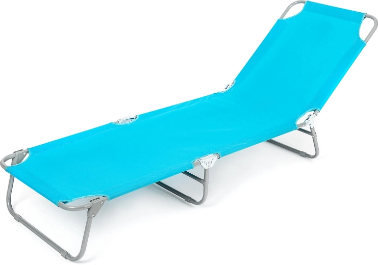 Užijte si komfortní odpočinek s lehátkem SUNBAY ve světle modré barvě. Pevná kovová konstrukce, odolná textilie 600D Oxford a nastavitelný sklon opěradla i podnožky zajistí pohodlí na zahradě, terase i u bazénu. Nosnost 100 kg a kompaktní rozměry 186 × 53 × 24 cm jsou ideální pro každodenní relax.