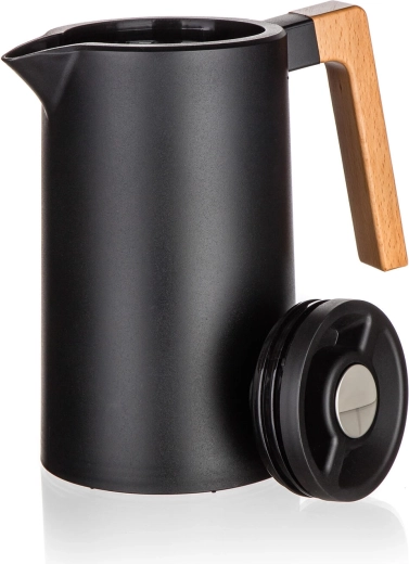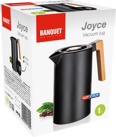 Termokonvice Joyce spojuje moderní design v černém provedení s funkčností na každý den. Dvojité nerezové stěny s vakuovou izolací efektivně udržují teplotu, zatímco víčko s kulatou pojistkou umožní nalévat jedním stiskem – bez zbytečného odšroubování a ztráty tepla.