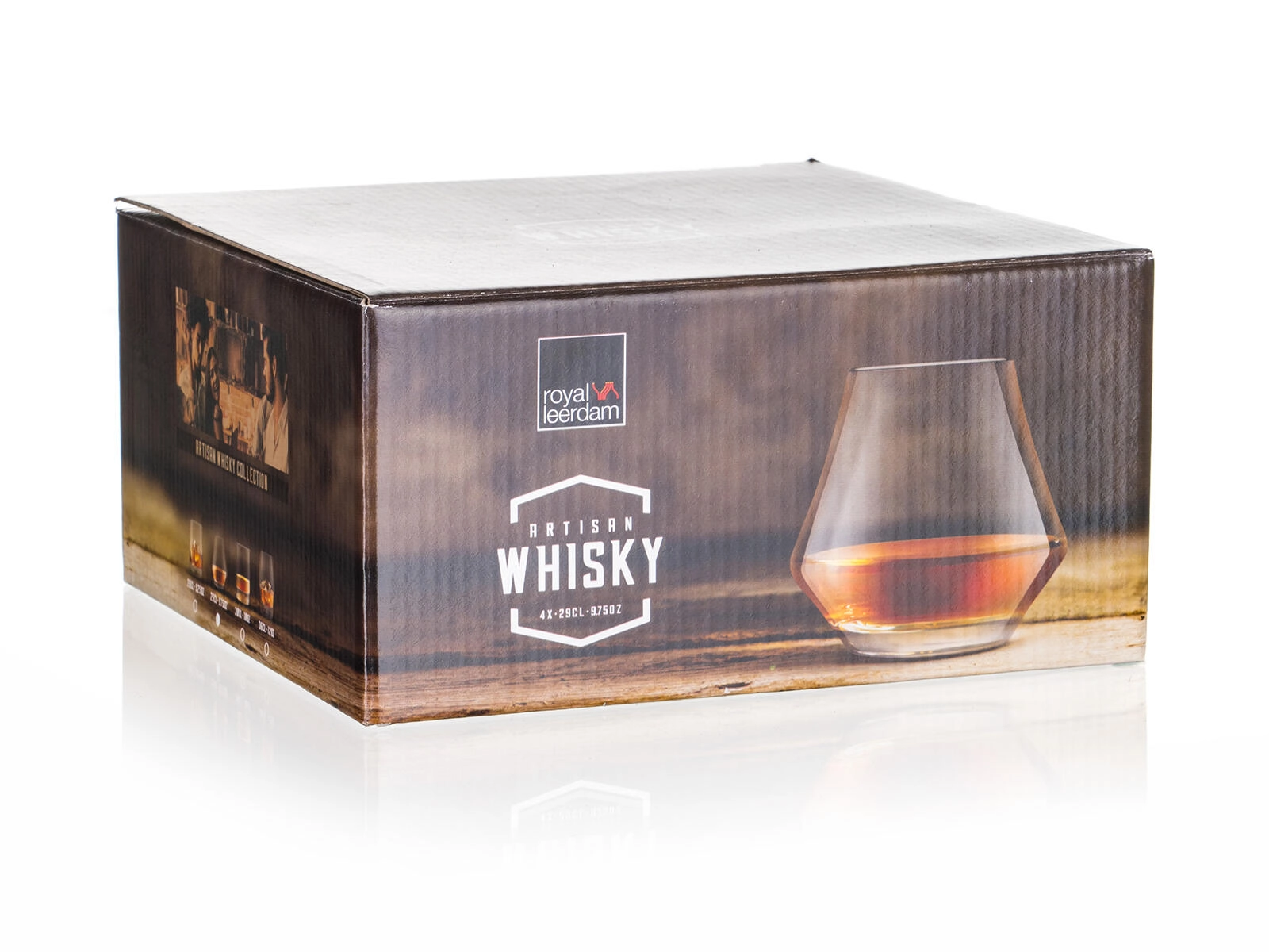 Elegantní sada čtyř nízkých sklenic na whisky o objemu 290 ml od značky ROYAL LEERDAM. Vyrobeno z kvalitního skla s tvrzeným okrajem pro vyšší odolnost a dlouhou životnost. Ideální pro podávání whisky, bourbonu i nealko nápojů díky stabilnímu tvaru a pohodlnému úchopu.