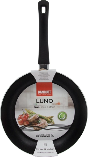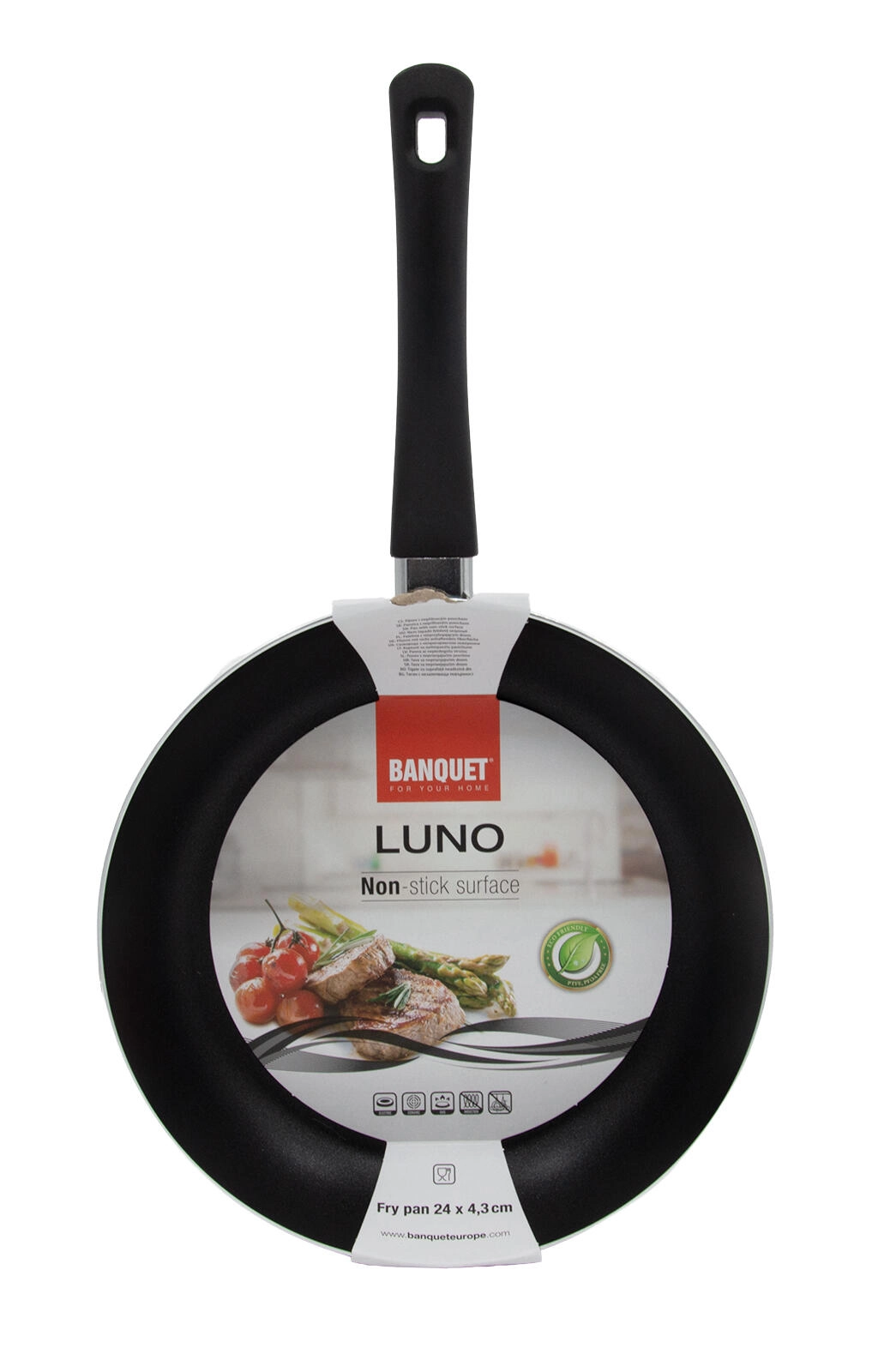 Pánev LUNO 24 cm je spolehlivý každodenní pomocník pro smažení, restování i rychlou přípravu oblíbených jídel. Dvouvrstvý nepřilnavý povrch v černé barvě zajišťuje hladké uvolnění pokrmů a minimalizuje potřebu oleje. Odolná hliníková konstrukce se rychle a rovnoměrně zahřívá, takže dosáhnete skvělých výsledků během chvilky.