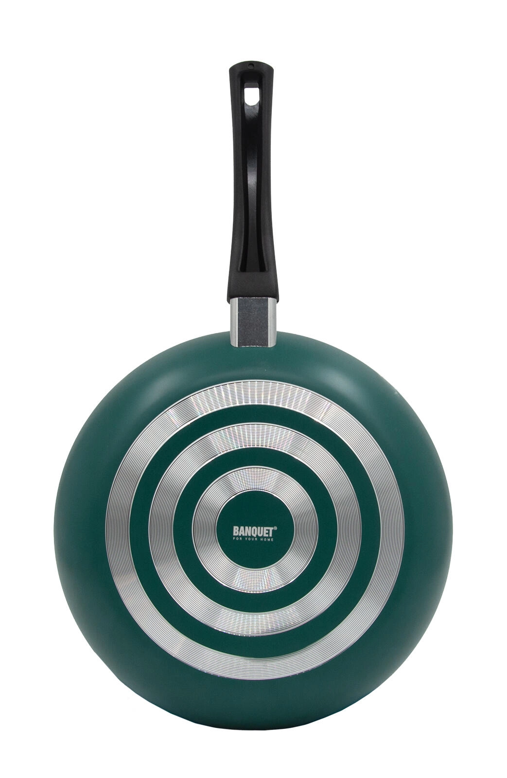 Ergonomická černá bakelitová rukojeť je příjemná na dotek a poskytuje jistý úchop. Vnější tyrkysová matná úprava z pánev dělá elegantní prvek vaší kuchyně. Pánev je kompatibilní s plynovými, elektrickými a sklokeramickými varnými deskami, není určena pro indukci.