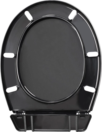 Univerzální černé WC sedátko je ideální volbou pro moderní koupelny. Vyrobené z kvalitního polypropylenu, nabízí odolnost proti opotřebení a snadnou údržbu. Díky nastavitelným úchytům jej jednoduše přizpůsobíte většině standardních toalet.