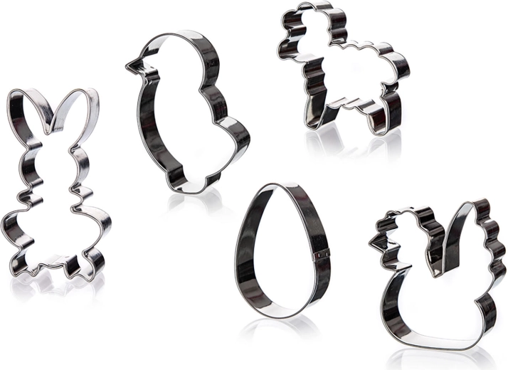 Objevte praktickou sadu vykrajovátek Culinaria pro snadné pečení cukroví a perníčků. Set obsahuje 5 velikonočních tvarů – kuřátko, vajíčko, slepička, zajíček a ovečka. Vykrajovátka jsou vyrobena z kvalitní nerezové oceli pro dlouhou životnost a snadnou údržbu.