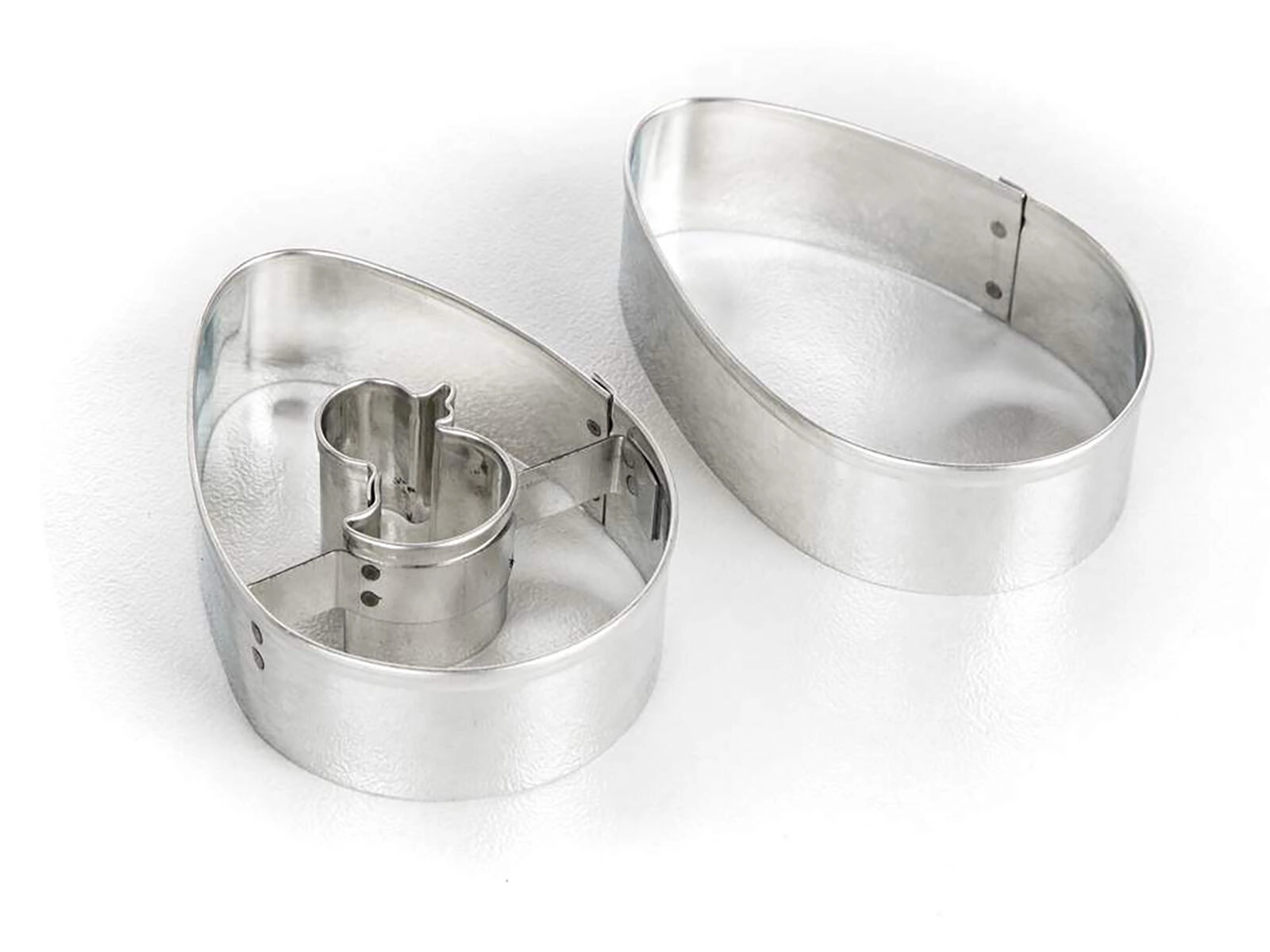 Objevte praktickou sadu vykrajovátek na cukroví ve tvaru vejce, ideální pro velikonoční i celoroční pečení. Sada nabízí hladké vajíčko a vajíčko se středovým tvarem kuřátka pro hravé zdobení. Vykrajovátka z pocínovaného plechu zajistí přesné tvary a dlouhou životnost.