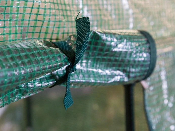 Přední rolovací dvířka se dvěma zipy usnadňují manipulaci a umožňují regulovat ventilaci a vlhkost uvnitř fóliovníku.