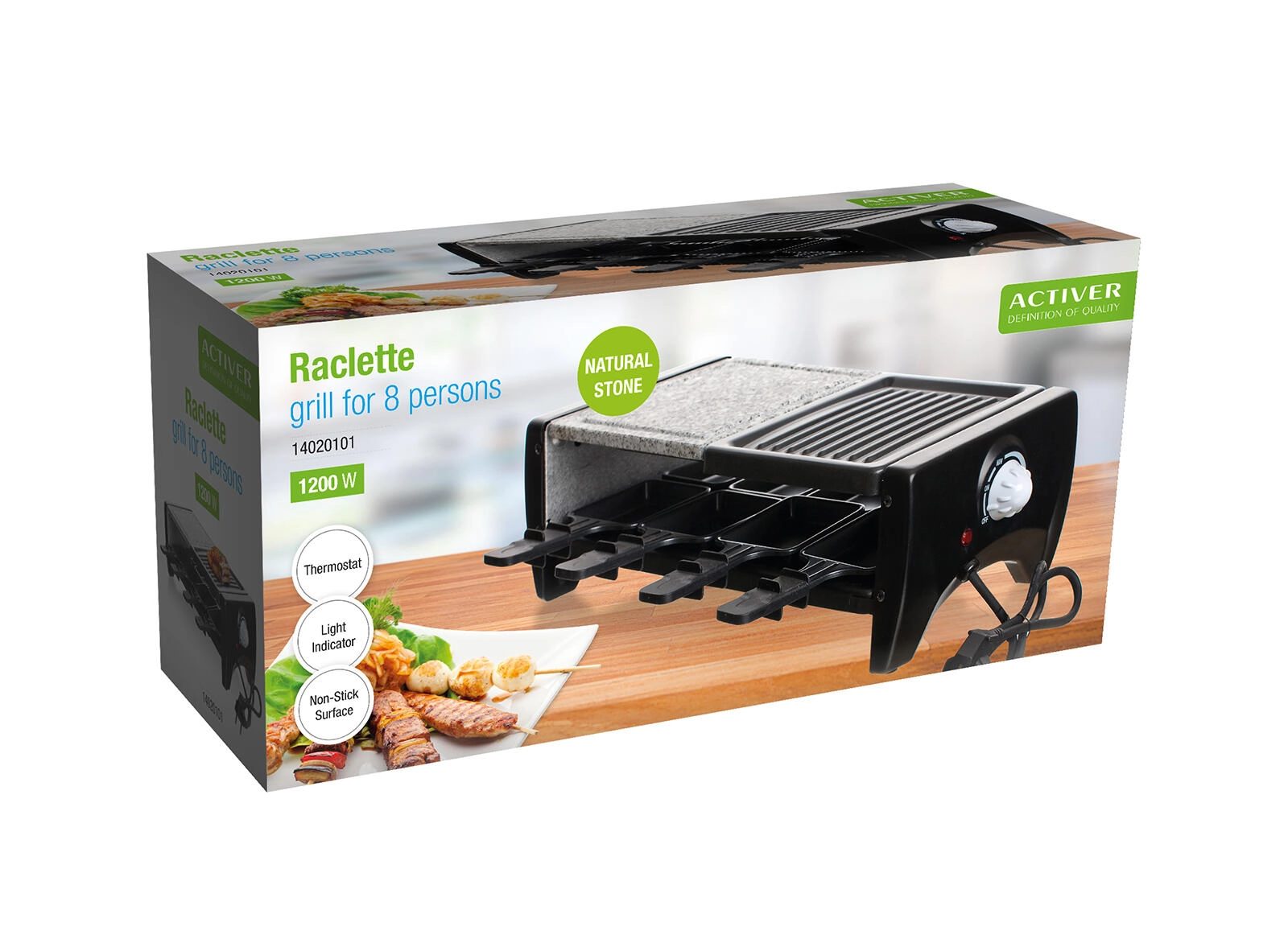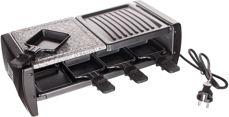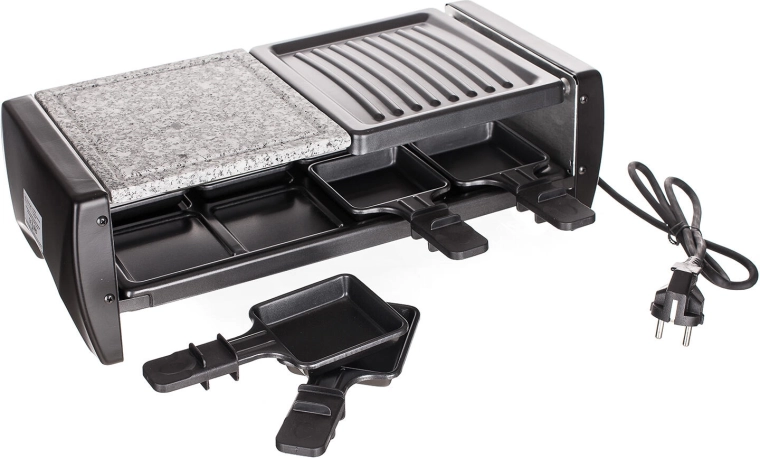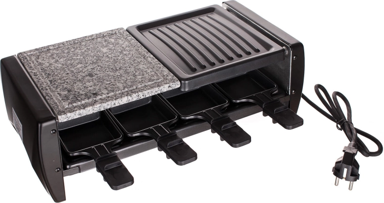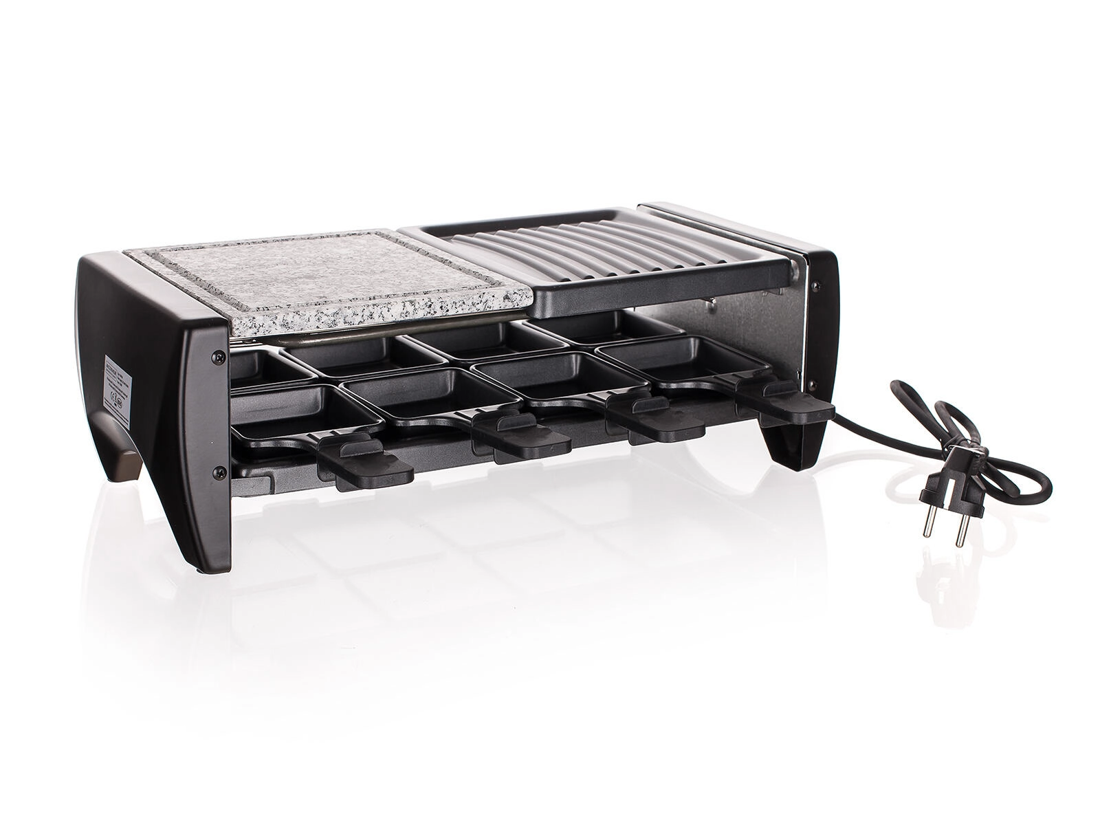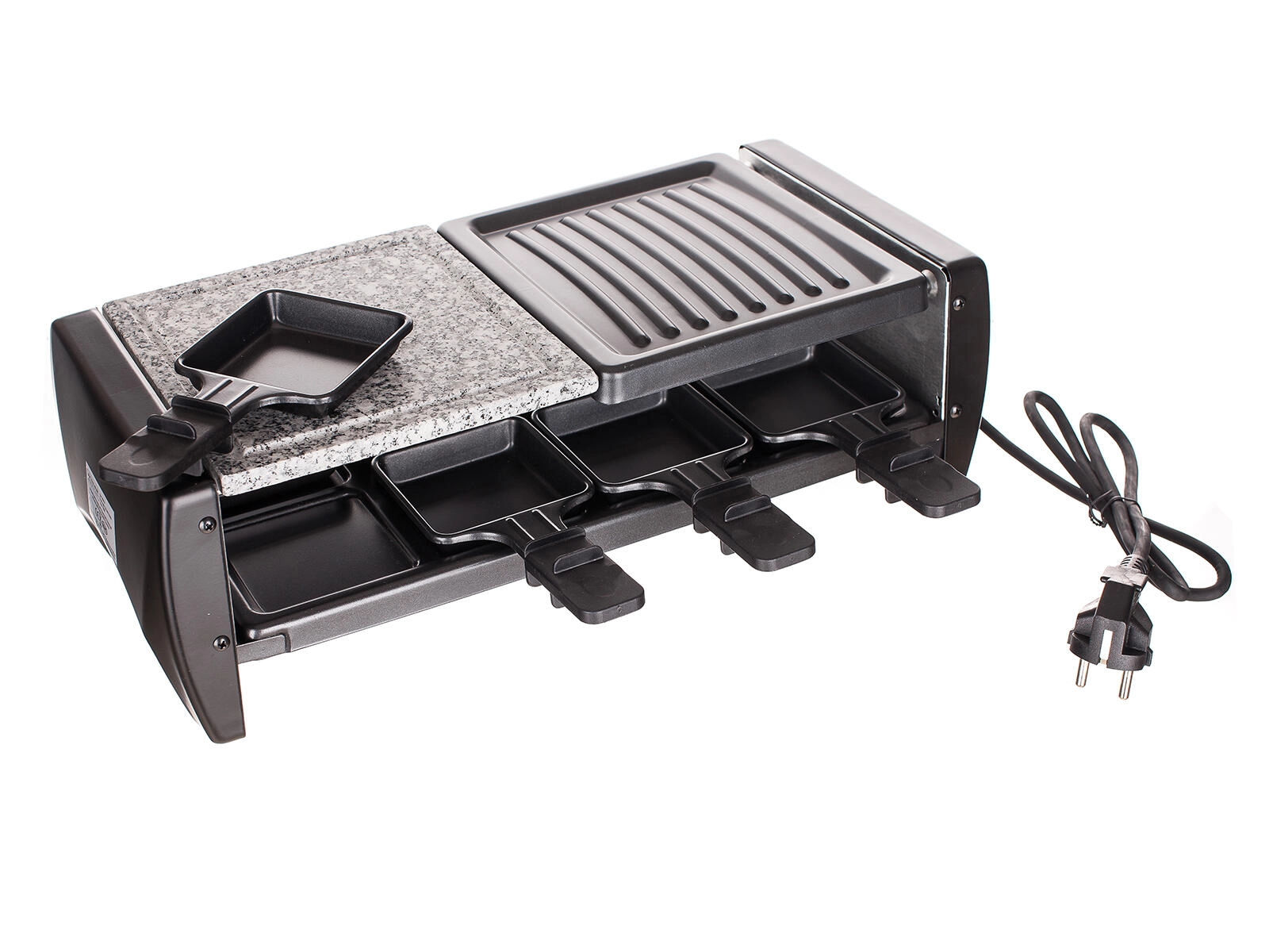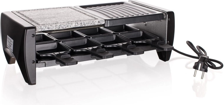 Raclette gril promění každé setkání v zážitek: kombinace kamenné desky pro šetrné pečení a žebrované desky pro typické grilovací pruhy je ideální na maso, ryby, zeleninu i sýry. Díky plynule regulovatelnému termostatu snadno nastavíte optimální teplotu pro každý druh suroviny.