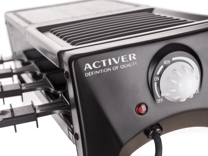 Osm nepřilnavých pánviček umožní každému připravit si vlastní porci – od rozpečeného sýra po mini omelety či zeleninové směsi. Gril je rozebíratelný a po vychladnutí se velmi snadno čistí, takže je perfektní pro každodenní použití doma i na balkóně.