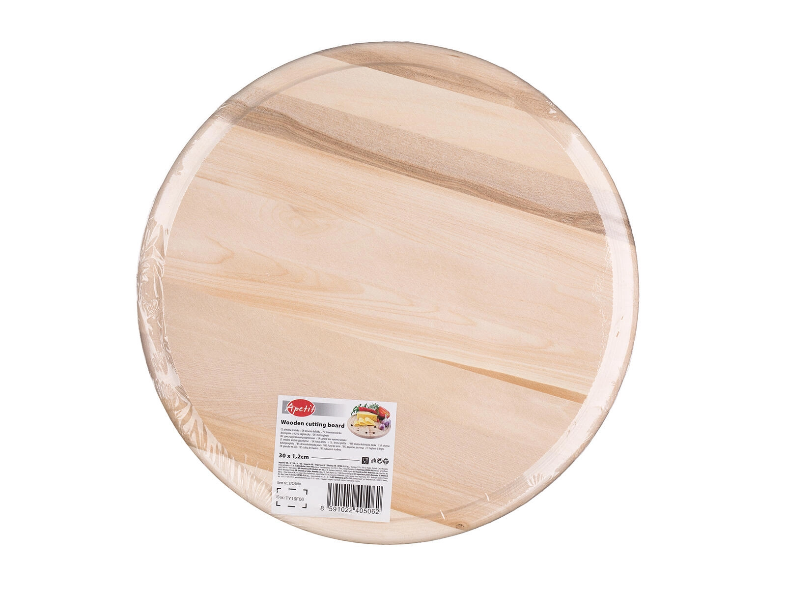 Objevte spolehlivé prkénko z březového dřeva s průměrem 30 cm a výškou 1,2 cm. Kulatý tvar a obvodová drážka zajišťují komfortní krájení i servírování pečiva, sýrů či masa bez nepořádku na lince.