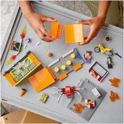 LEGO City Kaskadérský park Stuntz vám umožní roztočit motorku se setrvačníkem a předvádět úžasné kousky. S několika rampami a ohnivými překážkami tato stavebnice nabízí nekonečné možnosti pro imaginativní hru. Můžete kombinovat s jinými sety LEGO City Stuntz a vytvořit si ještě větší kaskadérský park.
