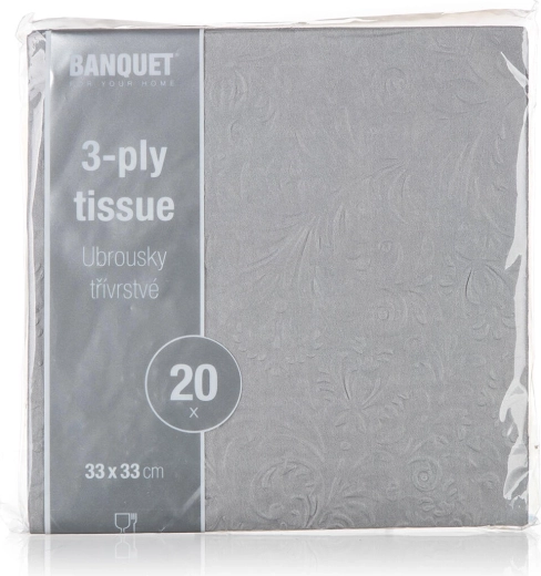Vylaďte prostírání s šedými ubrousky s elegantním reliéfem, které dodají stolování prémiový vzhled. Díky 3 vrstvám jsou příjemné na dotek, odolné a spolehlivě zvládnou drobné nečistoty i rozlité kapky. Univerzální velikost 33 × 33 cm se hodí k obědu, večeři i občerstvení na oslavách.