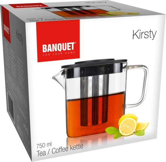 Skleněná konvice KIRSTY kombinuje minimalistický design a praktické zpracování. Čiré borosilikátové sklo umožňuje sledovat intenzitu nápoje, zatímco jemné nerezové sítko zajistí čistý šálek bez drobných částeček. Díky objemu 0,75 l je perfektní pro každodenní přípravu čaje doma i v kanceláři.