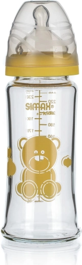 Širokohrdlá skleněná kojenecká láhev 250 ml je vyrobena z tvrdého borosilikátového skla, které vyniká vysokou mechanickou i tepelnou odolností. Díky tomu je ideální pro bezpečné podávání mléka a dalších tekutin, a to jak doma, tak na cestách. Sklo nepřejímá pachy ani chutě a je 100% hygienicky nezávadné.
