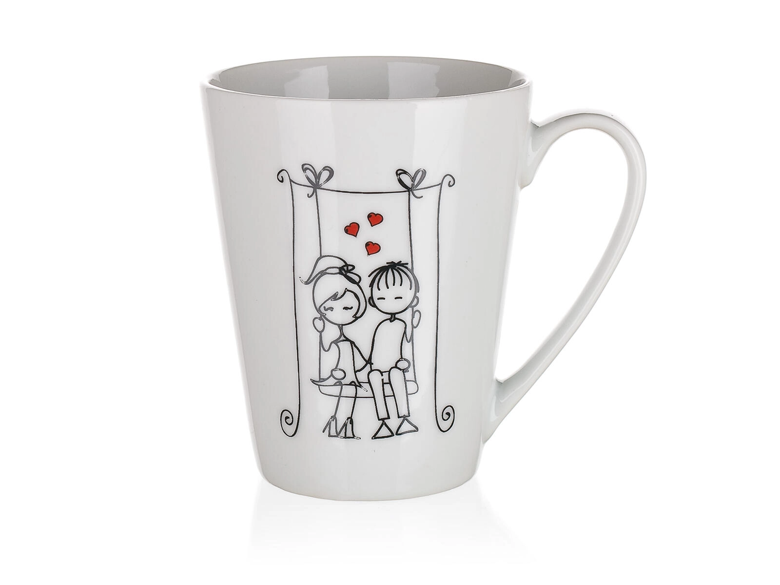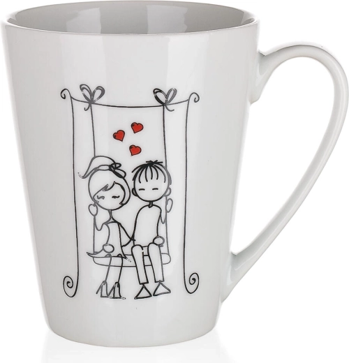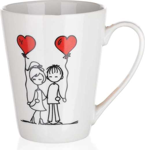 Užijte si své oblíbené horké i studené nápoje v elegantním keramickém hrnku LOVE s objemem 330 ml. Díky vyššímu, lehce kónickému tvaru se pohodlně drží, skvěle se z něj pije a jeho romantické dekorace s motivy páru a srdíček potěší jako dárek i pro každodenní radost.