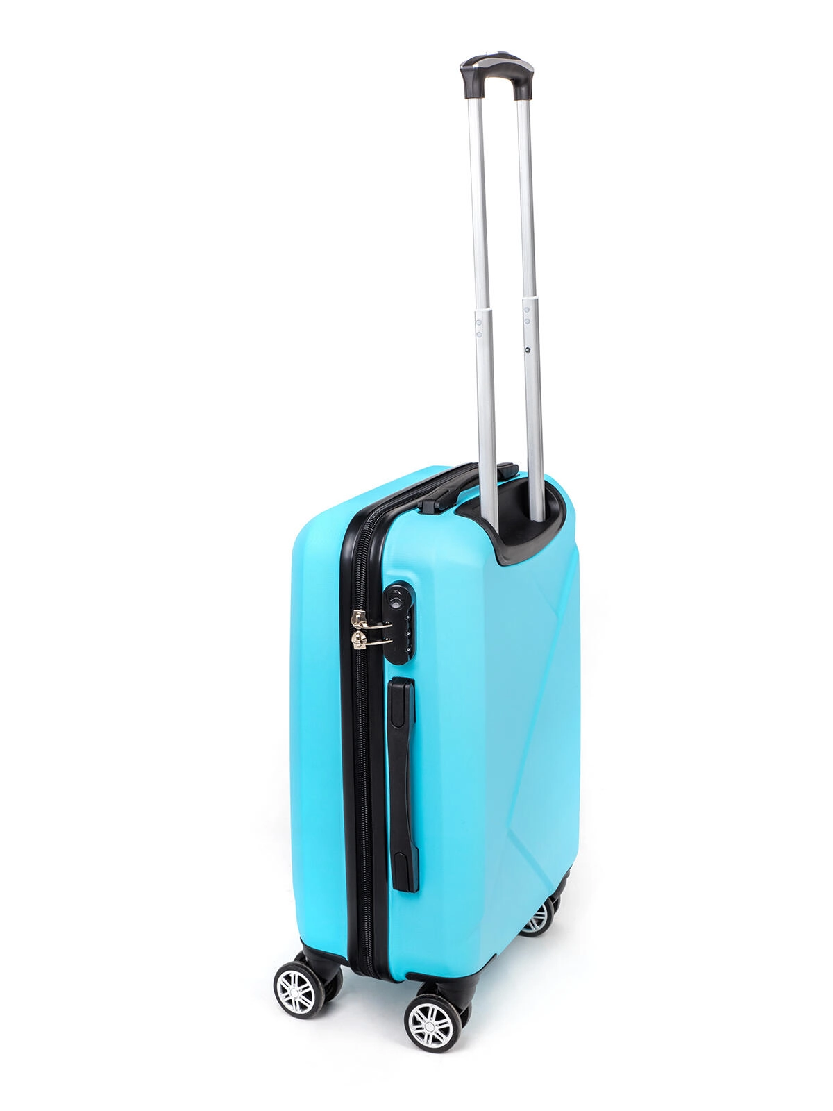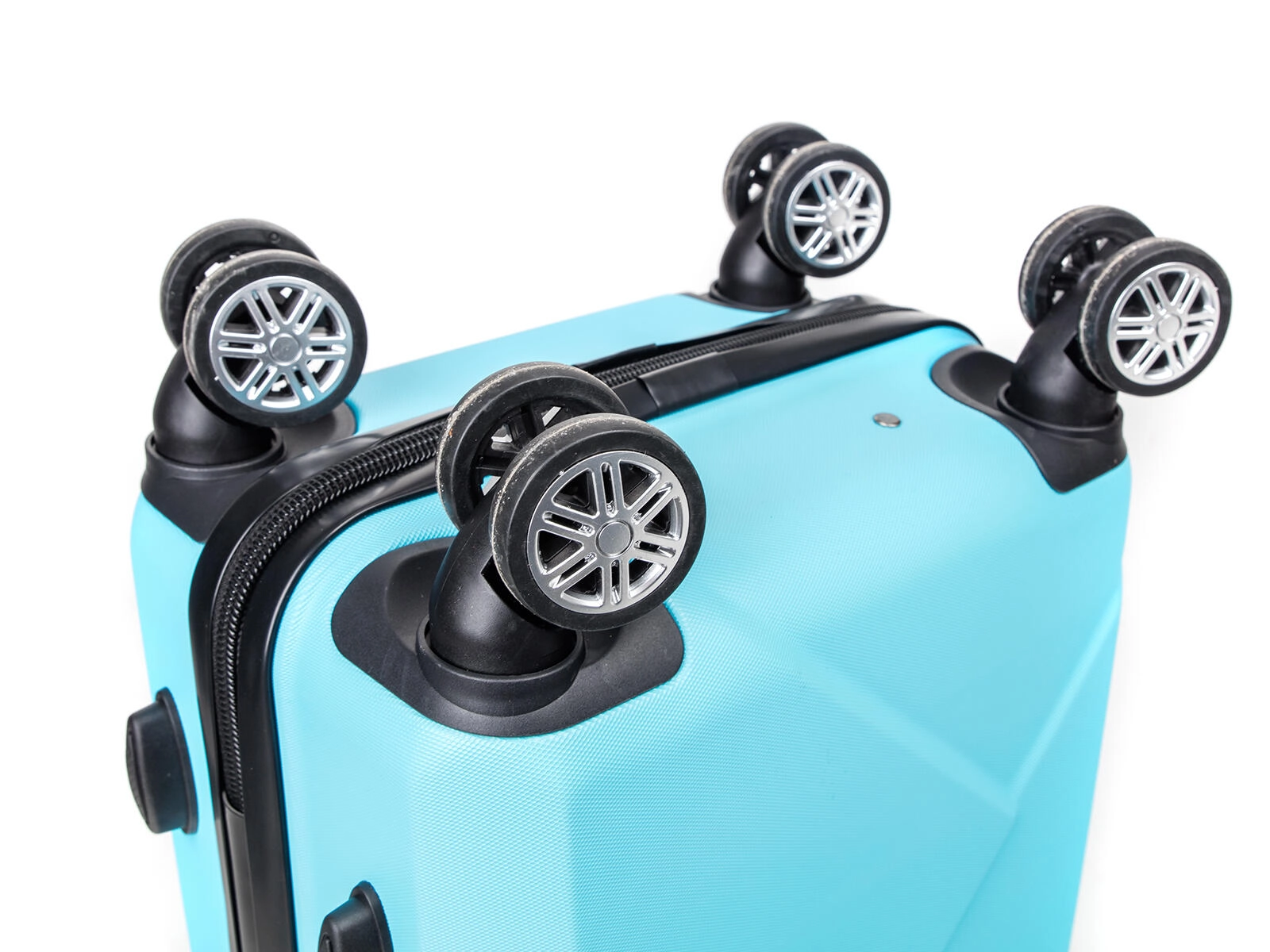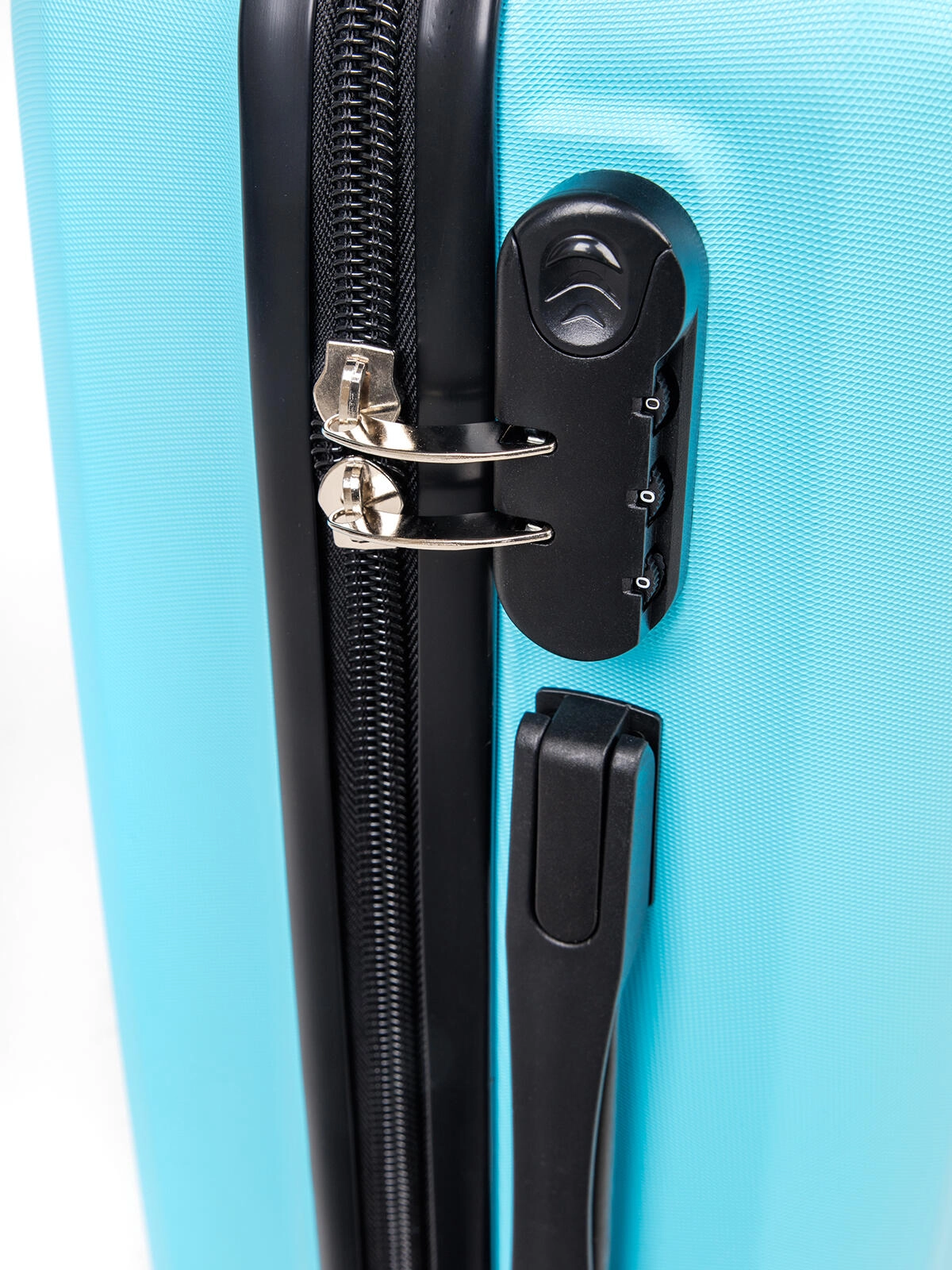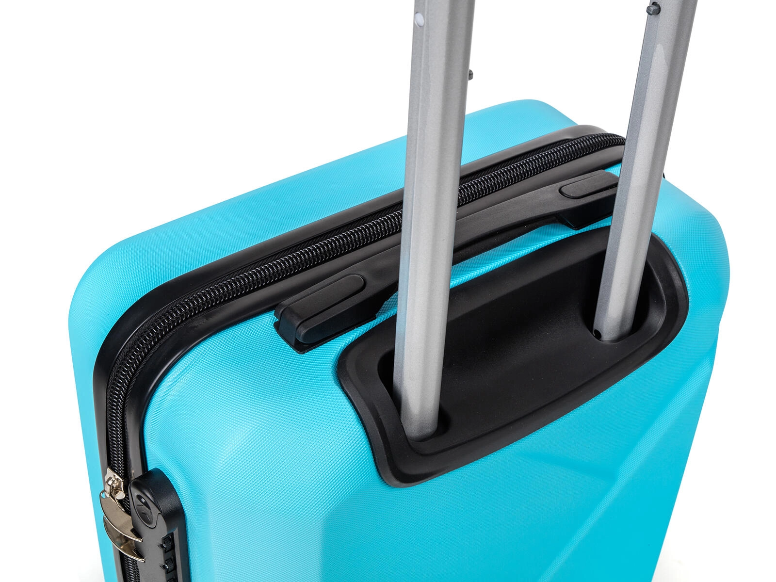 Stylový světle modrý kufr velikosti 20" je vyroben z odolného plastu ABS, který výborně chrání obsah proti nárazům. Díky čtyřem 360° kolečkům a teleskopické rukojeti je pohyb na letišti i ve městě maximálně plynulý a pohodlný. Uzavírání na zip s možností spojení jezdců do kódového zámku zvyšuje bezpečnost při cestování.