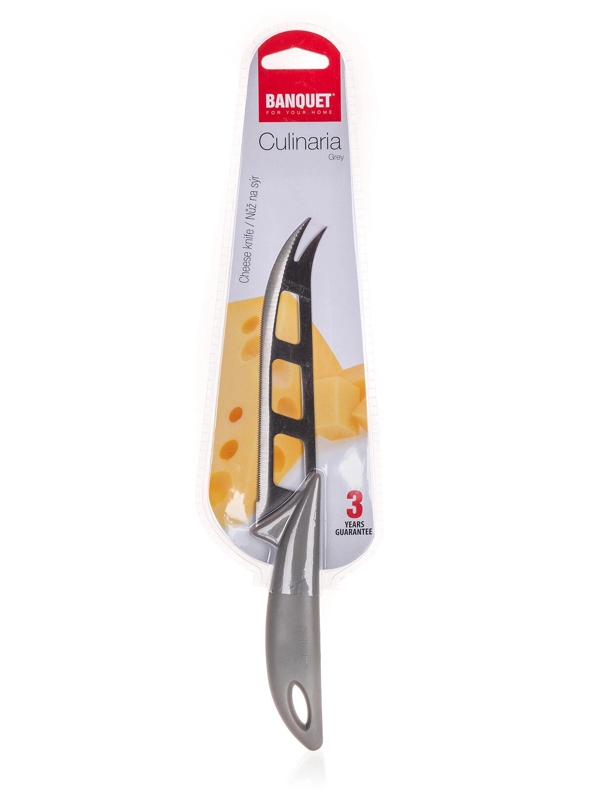 Nůž na sýr Culinaria Grey kombinuje kvalitní ocelové ostří a ergonomickou rukojeť pro komfortní krájení různých druhů sýrů. Celková délka 24 cm a vyvážená konstrukce zajišťují jistotu při manipulaci a hladké řezy bez drolení.