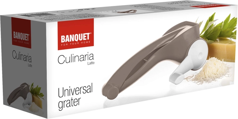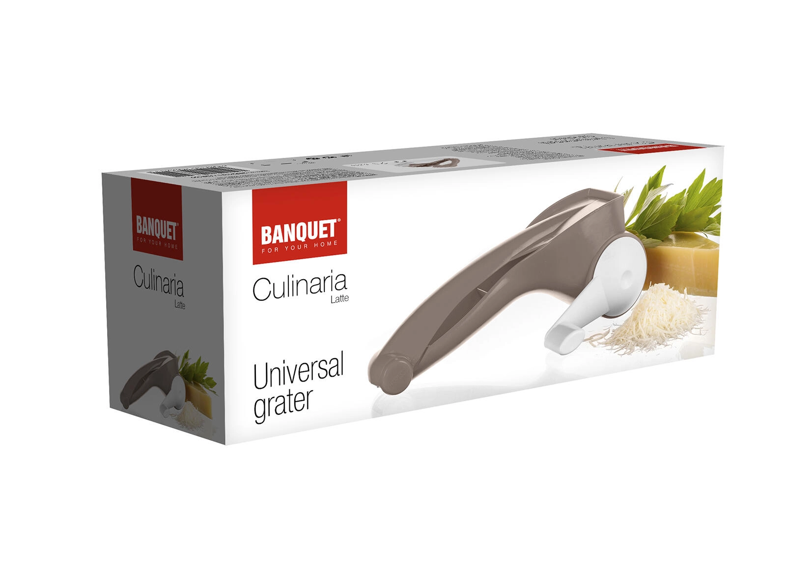 Praktické univerzální struhadlo s mlýnkem CULINARIA Latte pro rychlé a jemné strouhání. Nerezový bubínek o šířce 7 cm zajistí jemné výsledky při zpracování sýrů, ořechů i čokolády. Struhadlo je snadno udržovatelné a vhodné pro praváky i leváky.